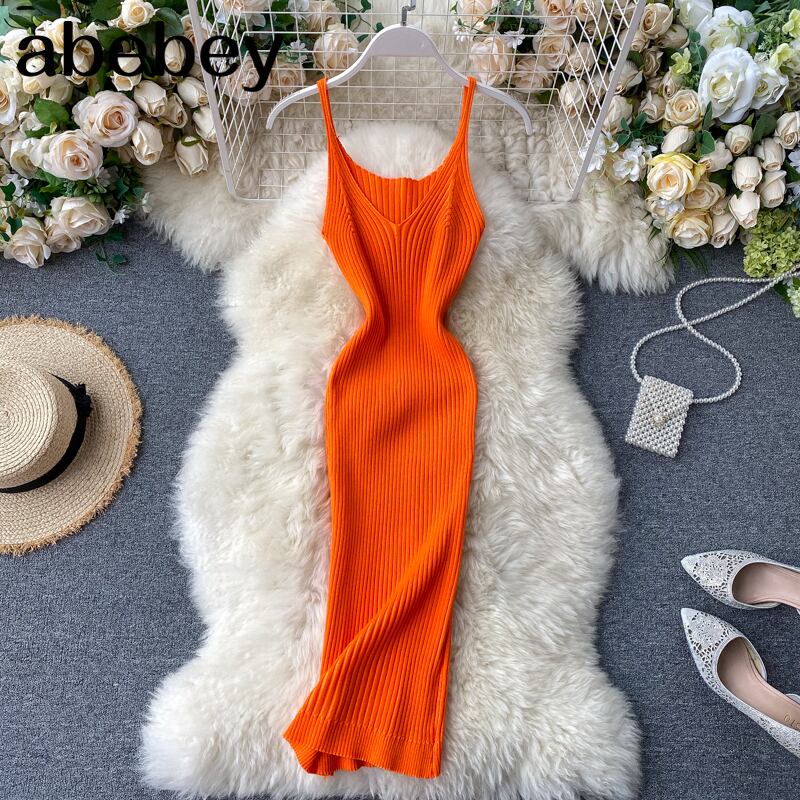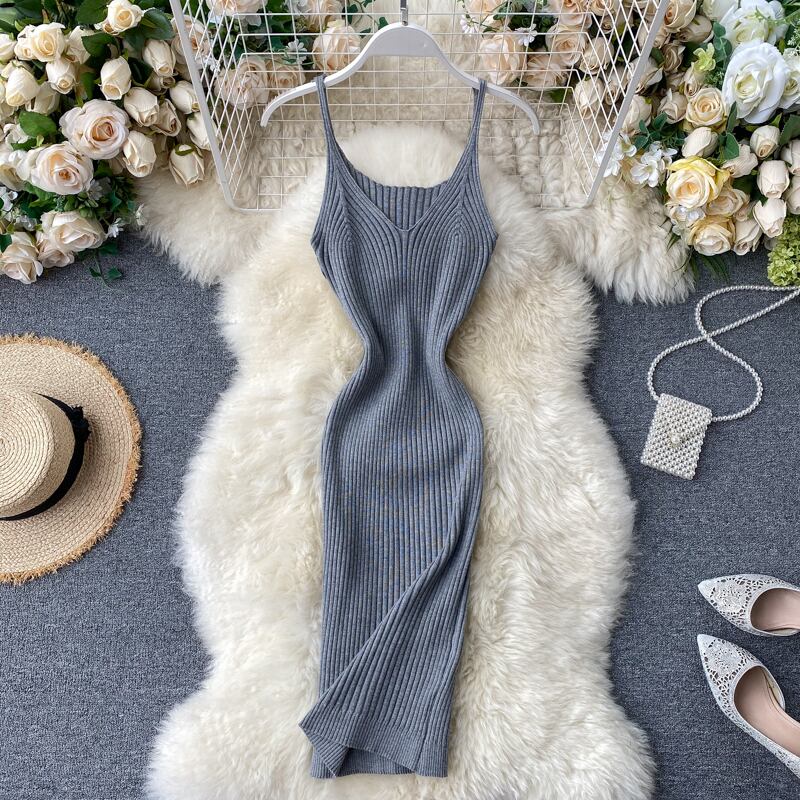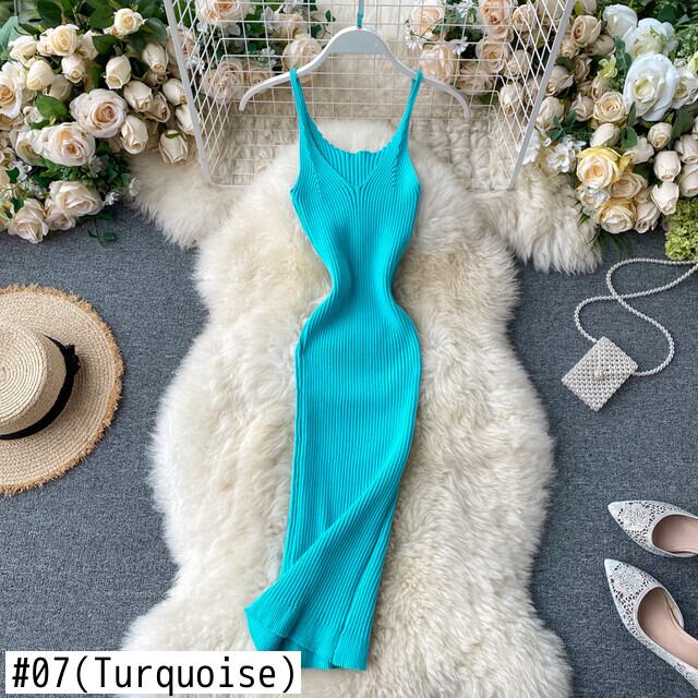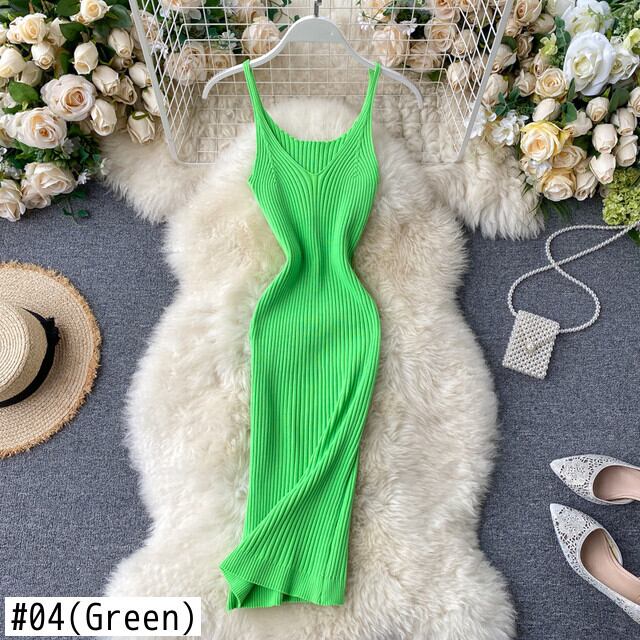 2022年夏の編み物ドレス女性無地ボディコンドレスプルオーバーシンプルなステップドレス サマー 夏物 ソリッドカラー Abe36164425802