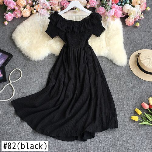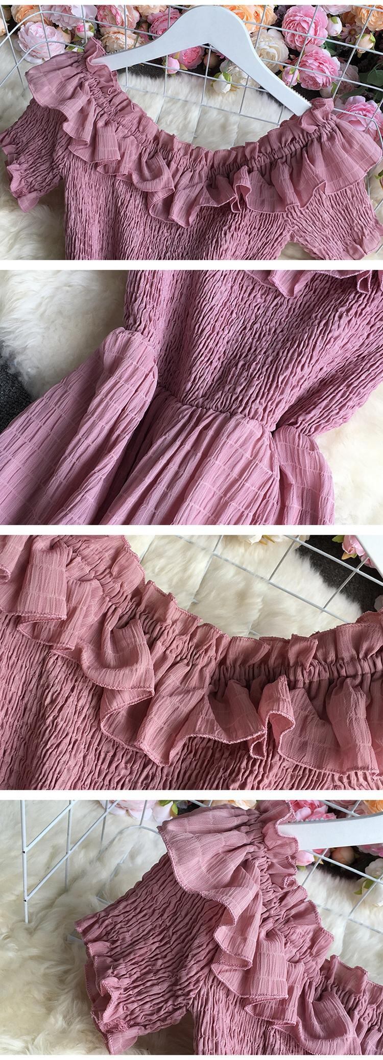 2022年春秋スラッシュネック半袖ワンピースアガリックエッジフリルハイウエストプリーツミドル丈Aラインワンピース ハイウェスト ショート ハーフスリーブ ラッフル スプリング 春物 オータム 秋物 Abe46234656635
