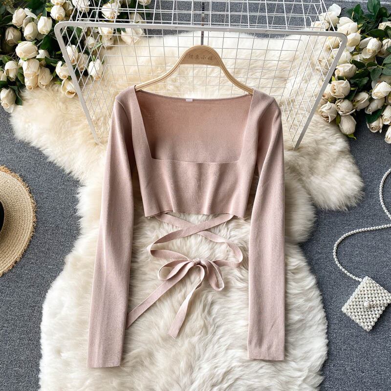 秋のフランス人女性ニットワンピース長袖トップス+セクシーノースリーブAラインストラップワンピースツーピーススーツ ロング オータム 秋物 Abe20764089528