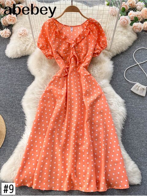 2022年ホワイトポルカドットサマードレスレディースVネックセクシーAラインマキシパーティードレスVestidosボヘミアンビーチロングドレスサンドレス 夏物 Abe11065610016