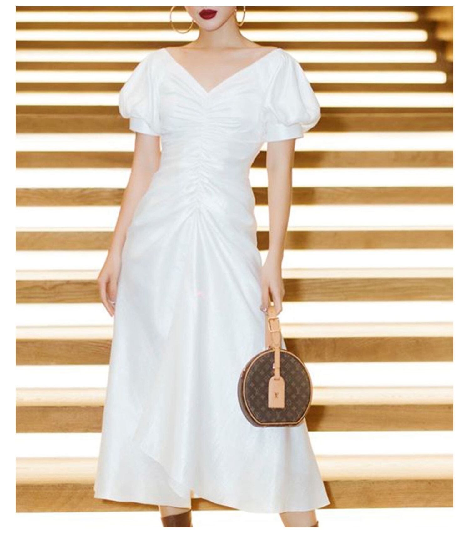 女性のセクシーなVネックの白いドレス2020夏半袖フレンチヴィンテージパーティードレス ショート ホワイト ハーフスリーブ サマー 夏物 ビンテージ Rhc3747932341