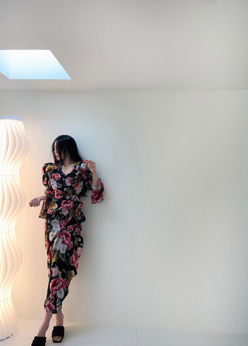 女性フレンチフローラルドレスVネックサッシAラインドレスフリル夏ボヘミアンバケーションロングドレス ラッフル サマー 夏物 花柄 Rhc96416869641
