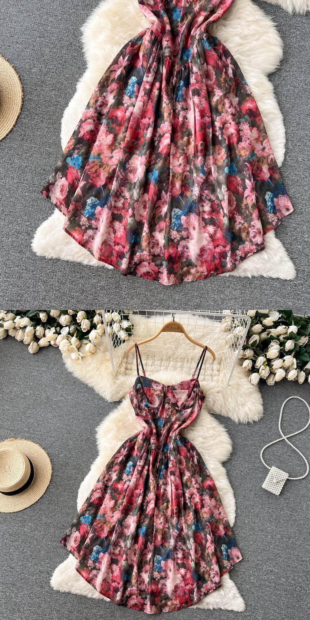 女性サマードレス2022ヴィンテージフリルプリントパーティーマキシロングドレス女性サンドレスセクシーなノースリーブパーティーローブ 夏物 ビンテージ Abe1845431254
