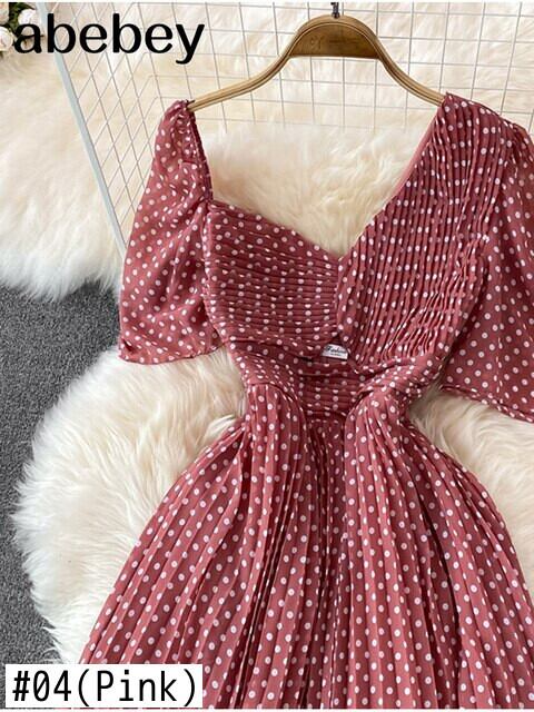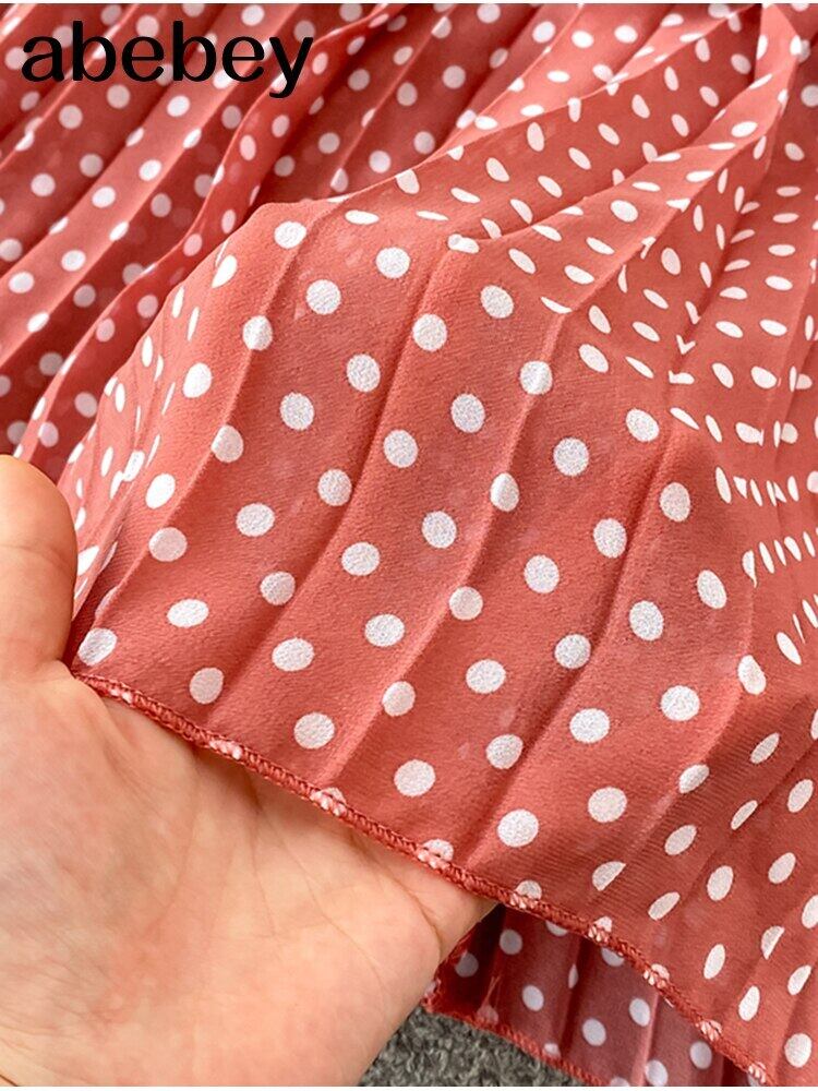 2022年夏の水玉シフォンドレス女性不規則な首プリーツプリントドレス中空セクシーなロングマキシドレス サマー 夏物 Abe15542249929