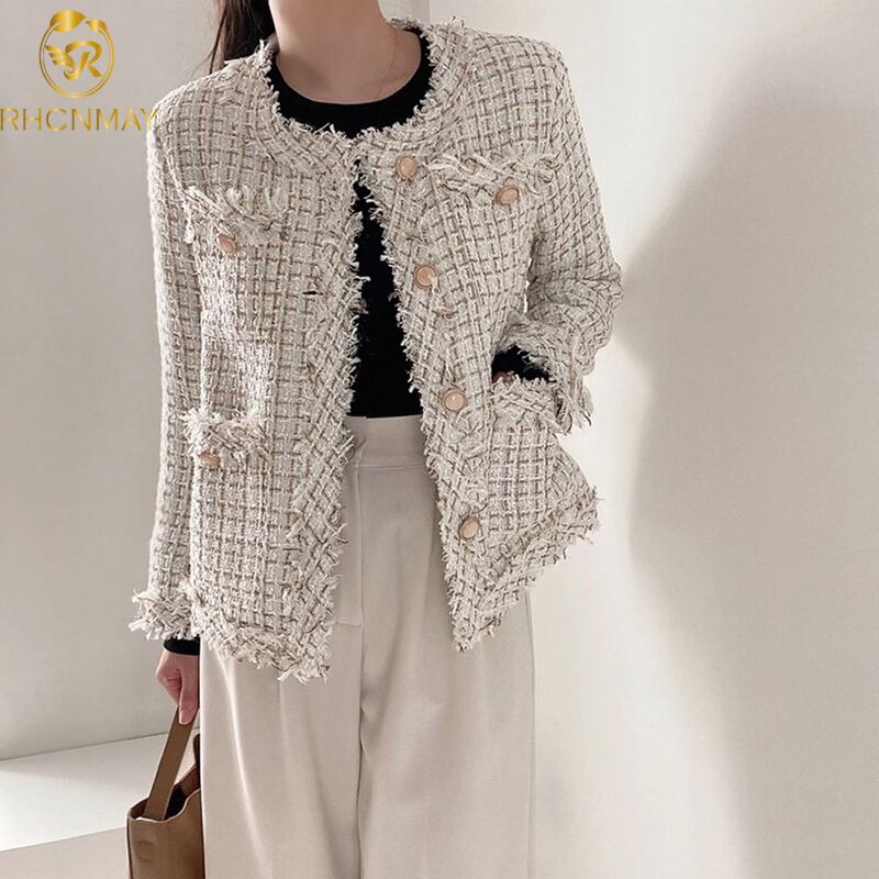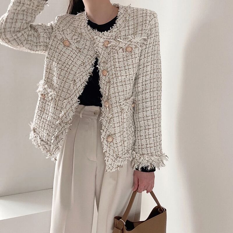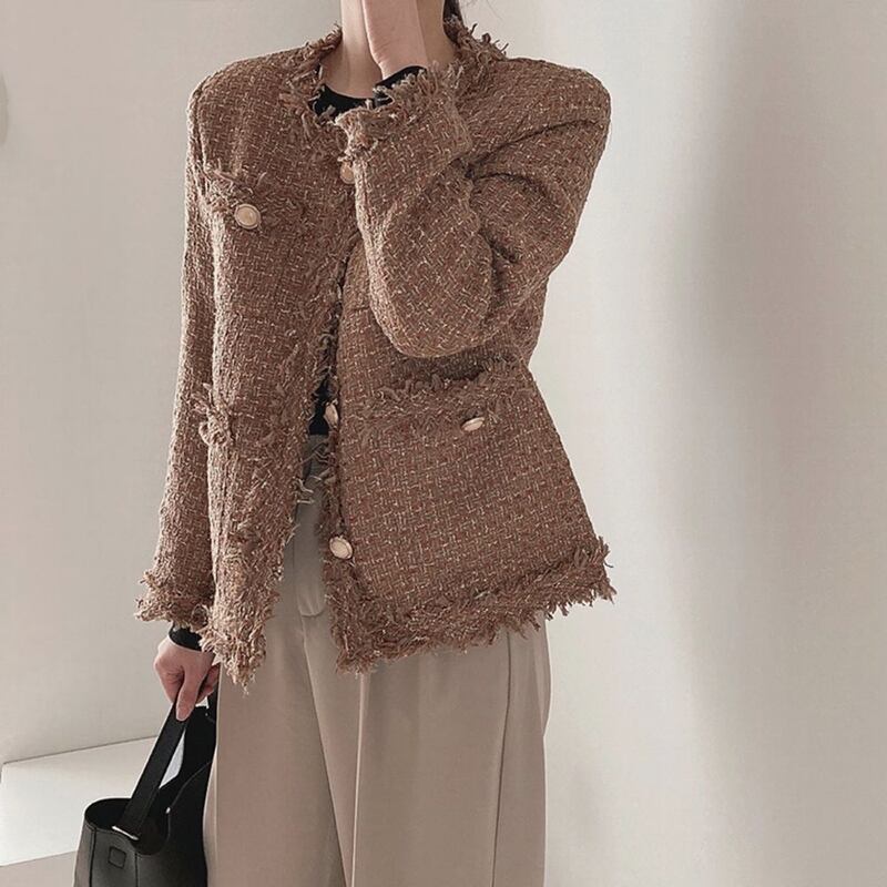 2020シックな秋冬レディースジャケットフレンチシングルブレストフリンジバインディング長袖ツイードコート ロング オータム 秋物 ウィンター 冬物 Rhc12321161821