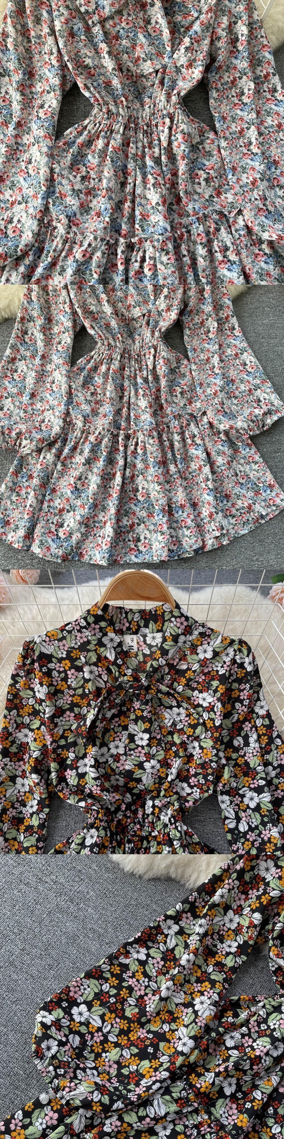ボヘミアンフローラルドレス女性スウィートフレンチAラインプリントドレス2022春のホリデーショートドレス 大人ガーリー キュート カジュアル スプリング 春物 花柄 Abe99471623769