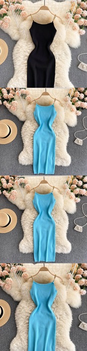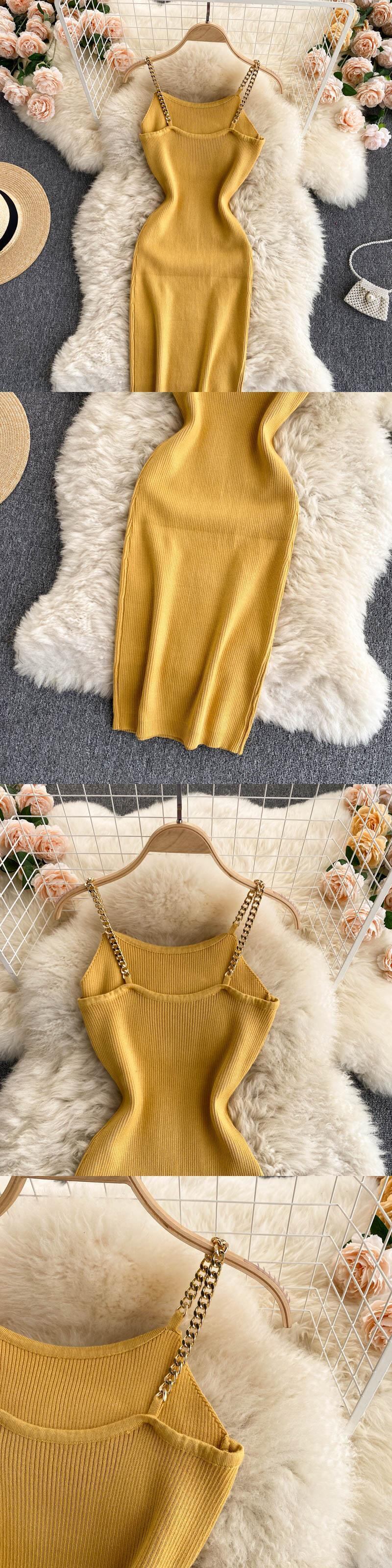 女性チェーンストラップニットドレススクエアカラーノースリーブ弾性ペンシルドレス夏セクシースリムストリートウェアショートドレス エラスティック 伸縮 サマー 夏物 スクウェア Abe59369256229