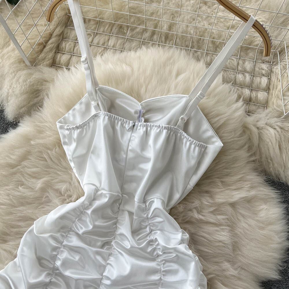 セクシーなクラブパーティーストラップドレス女性ノースリーブシャーリングソリッドスリムドレスサマーオフショルダーブラックホワイトショートサンドレス 夏物 ソリッドカラー Abe79947021382