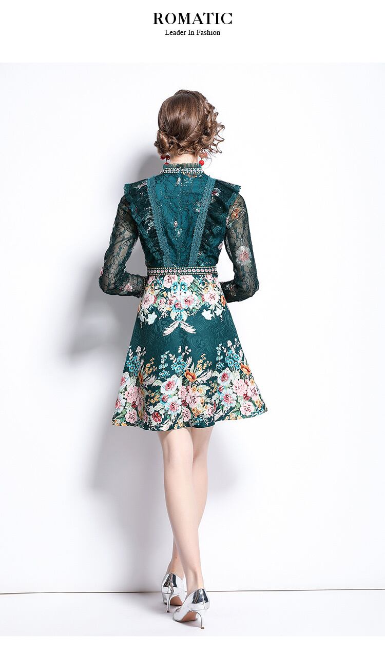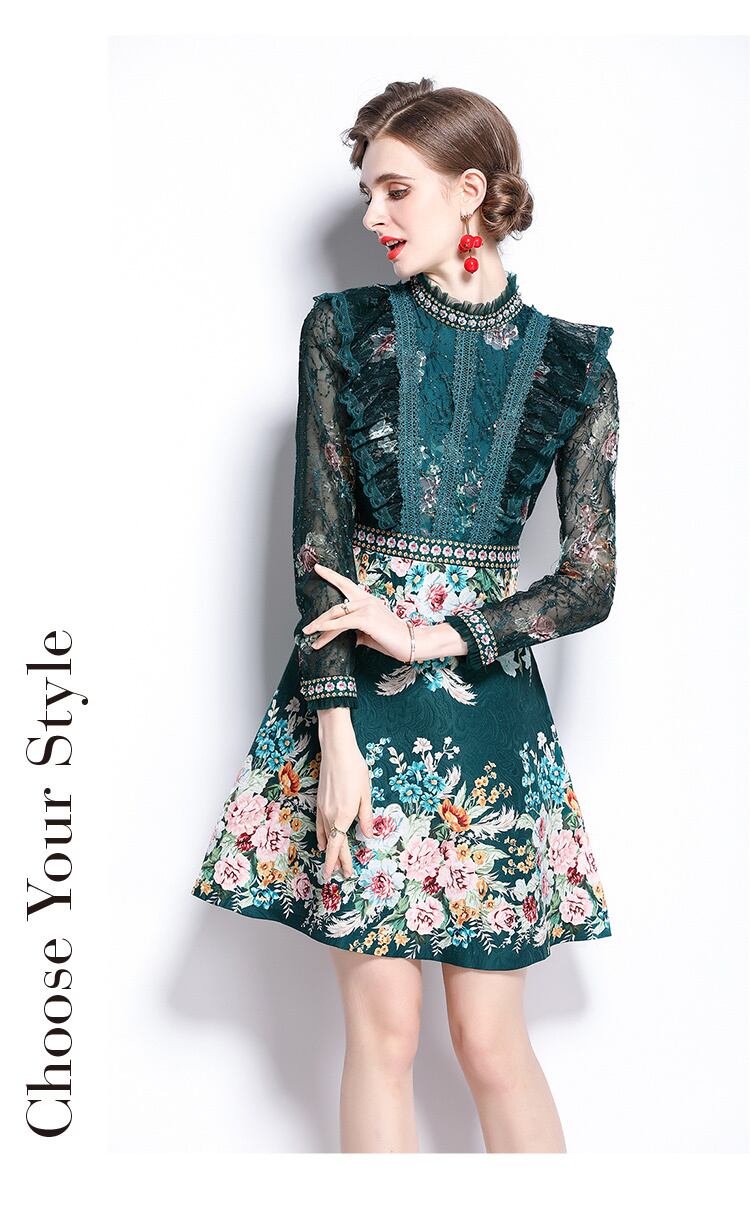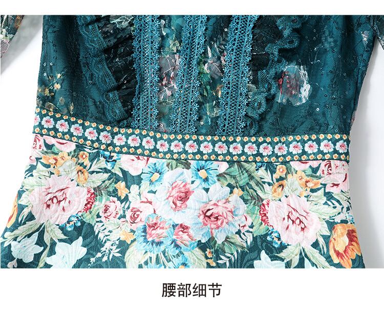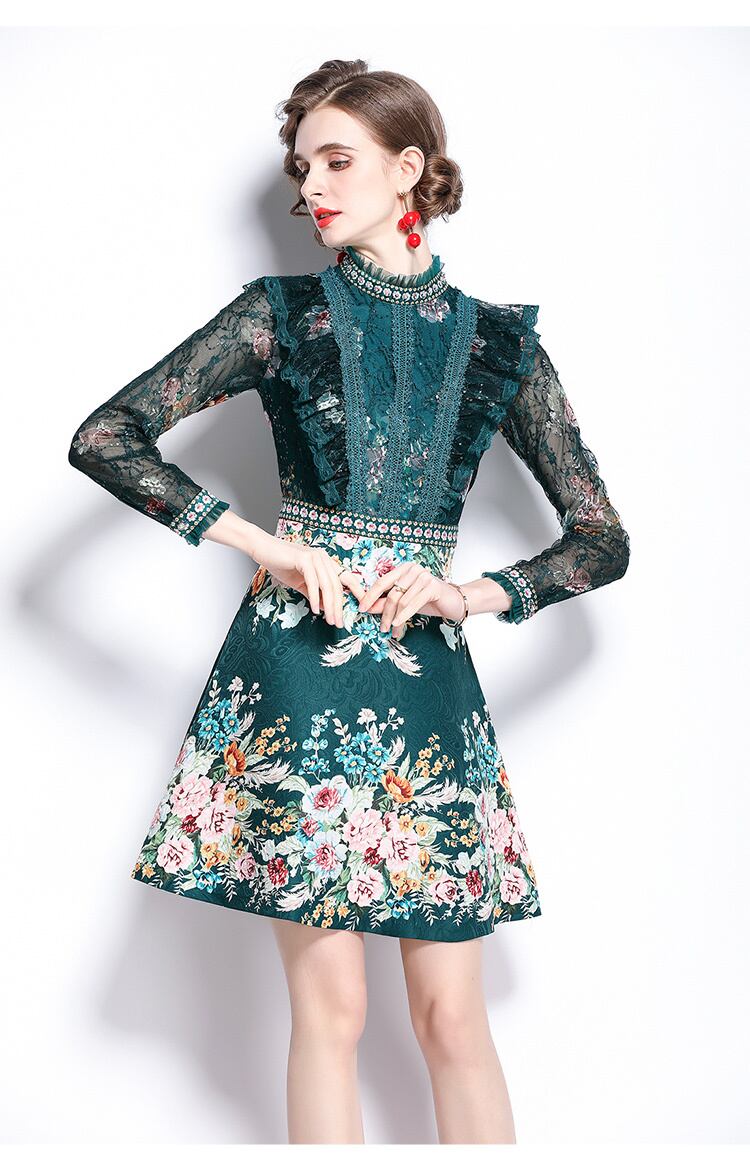高級滑走路ミニドレス女性服レースフリルヴィンテージプリントダイヤモンドスパンコールレトロパーティードレス ラッフル ビンテージ Rhc20835880679