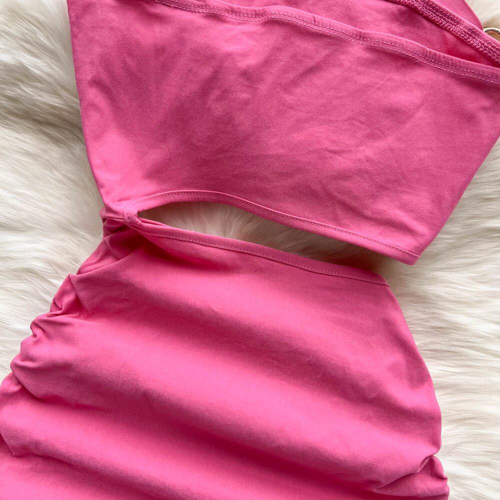 ホルターセクシーな背中の開いたミニドレスパーティークラブの衣装ソリッドカットアウトメタルリングネクタイボディコンドレス2022夏シックな原宿服 かわいい サマー 夏物 指輪 ソリッドカラー Abe72758945075