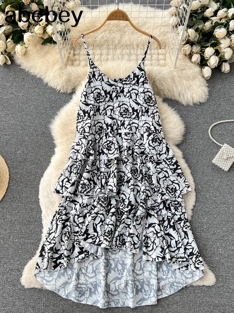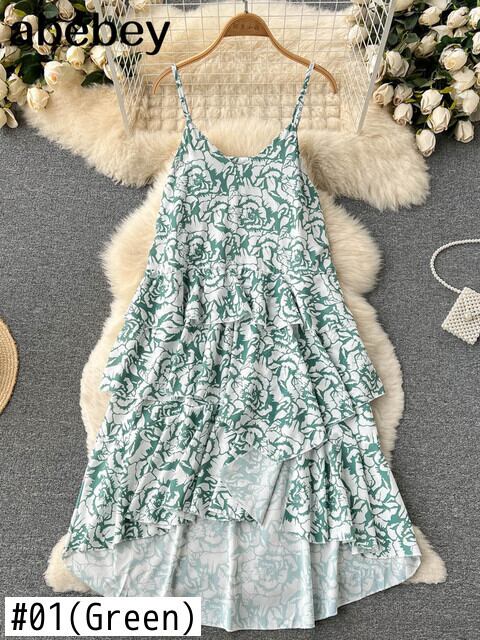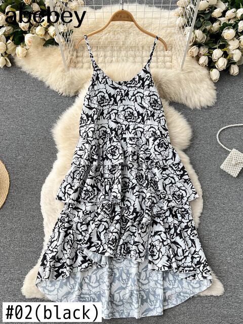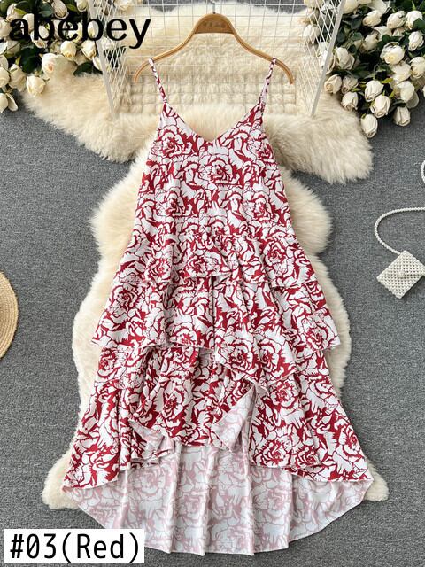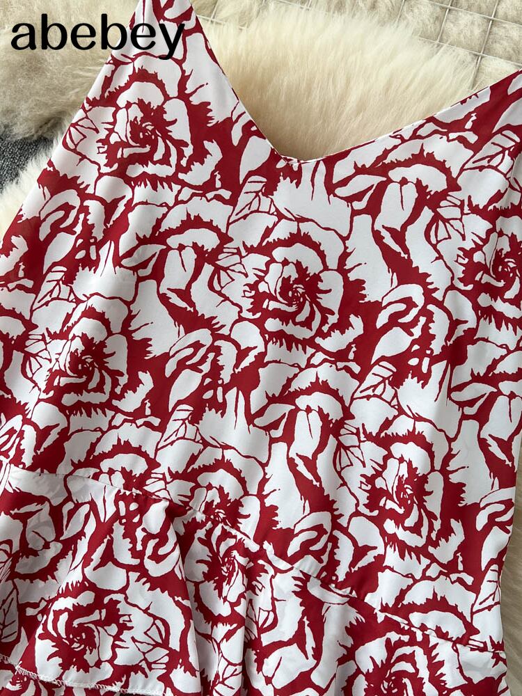 パーティーストラップドレス女性フレンチスタイルヴィンテージローズプリントウエスト見事なミディロングドレス女性夏 サマー 夏物 ビンテージ Abe94324019344