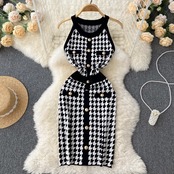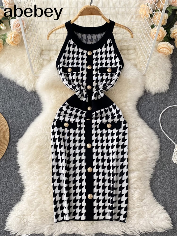 夏の女性の編み物シースホルタータンクドレスボディコンニットキャミソールノースリーブパッチワークミディドレス女性 サマー 夏物 Abe41614198142