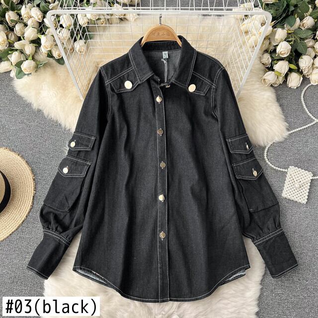 女性デニムシャツヴィンテージシングルブレスト長袖アウター2022春のストリートウェアルーズジーンズジャケット ロング スプリング 春物 ビンテージ Abe5060044328