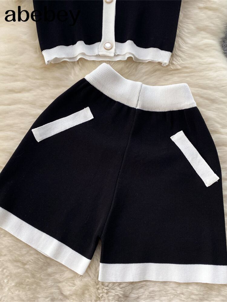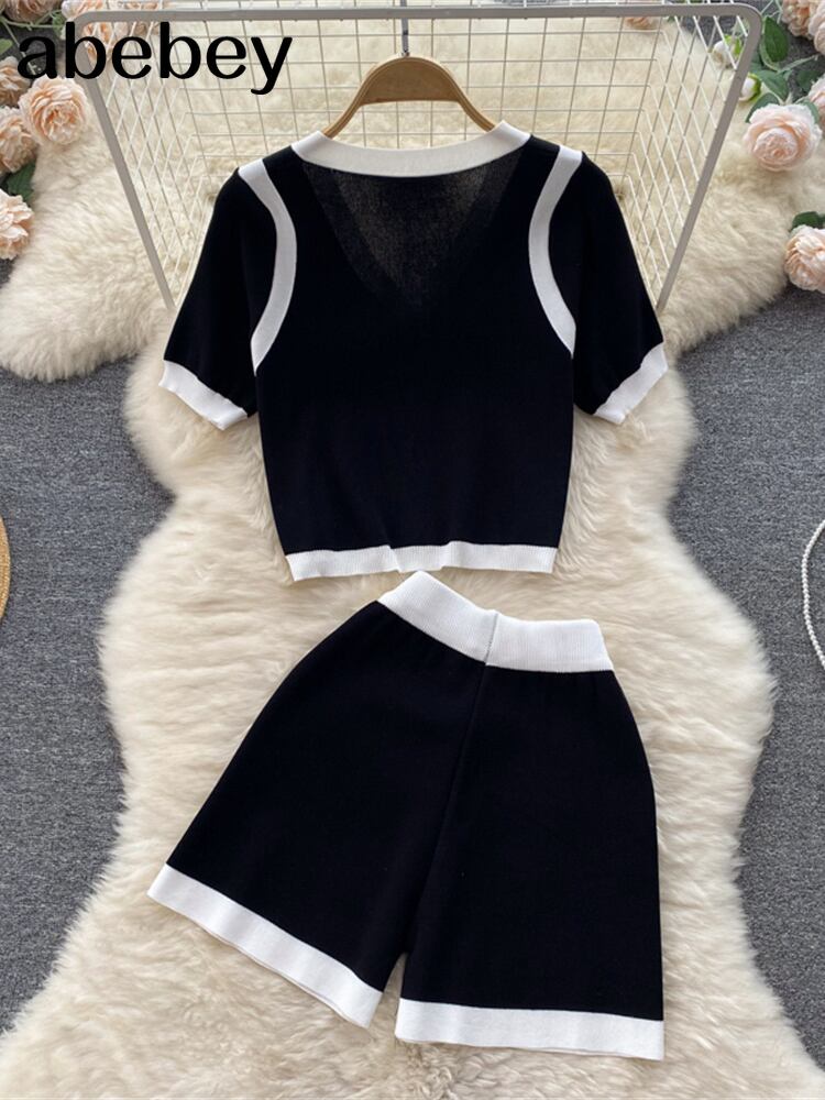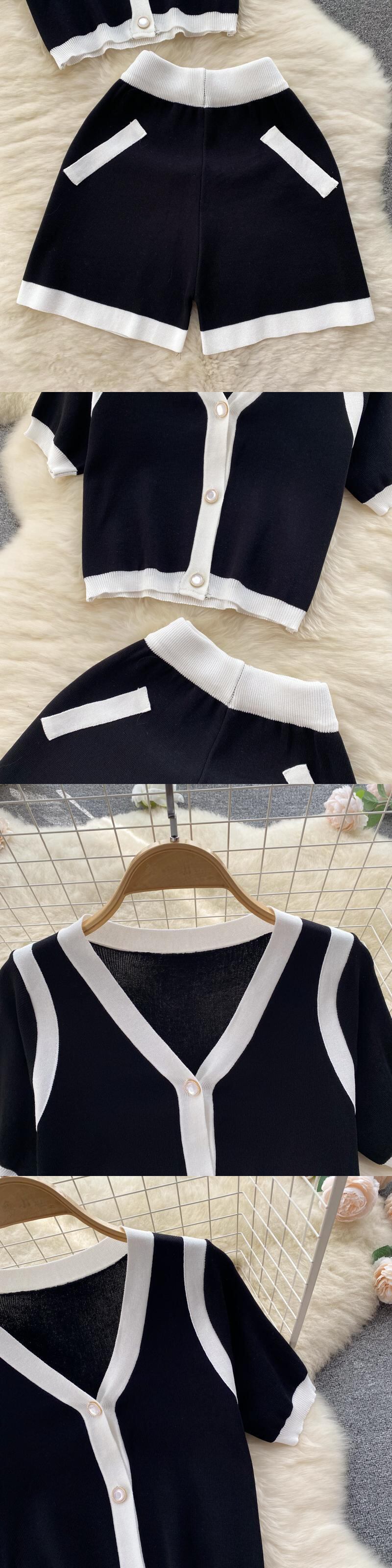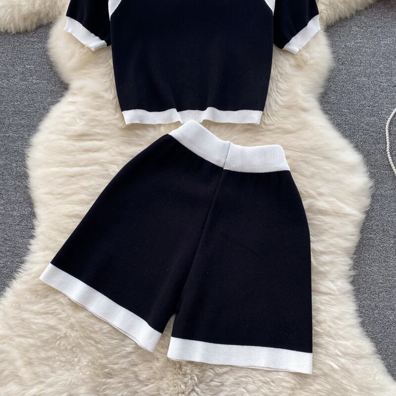 ニットツーピースセット衣装プリーツスーツ女性ジャンパートップス半袖セーターショーツニット2ピースセット ショート ハーフスリーブ ブルマー Abe95621142190