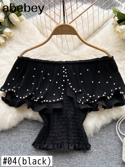 サマーオフショルダーセクシーブラウススラッシュネック半袖ショートトップスヴィンテージフリルスウィートブラウス ハーフスリーブ 大人ガーリー キュート カジュアル 夏物 ビンテージ Abe47284645012