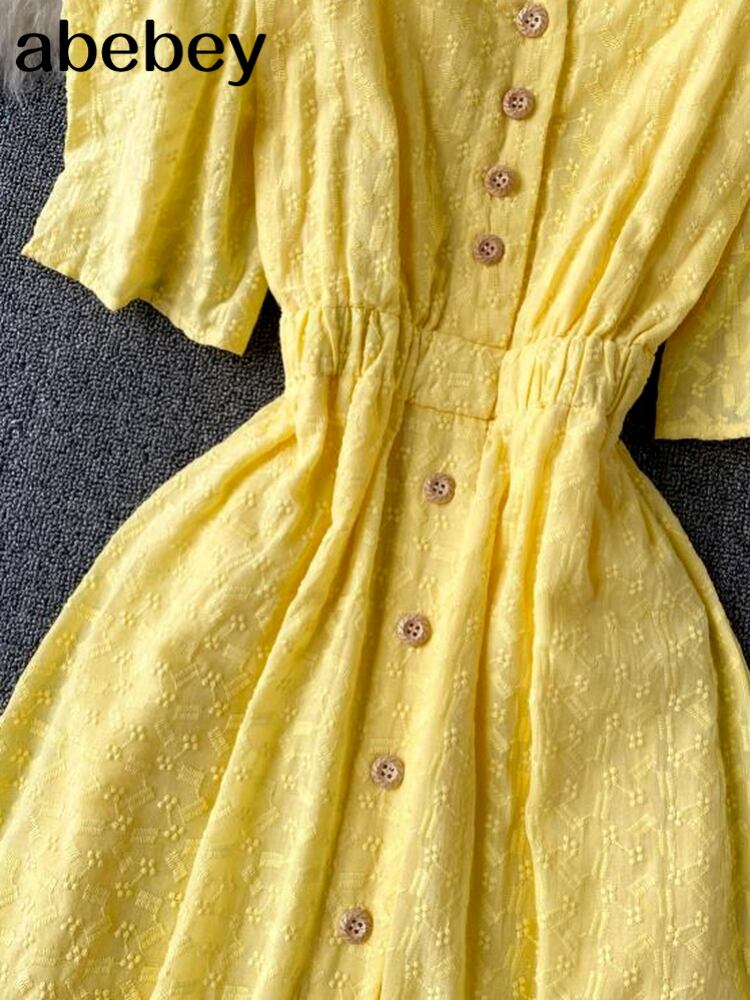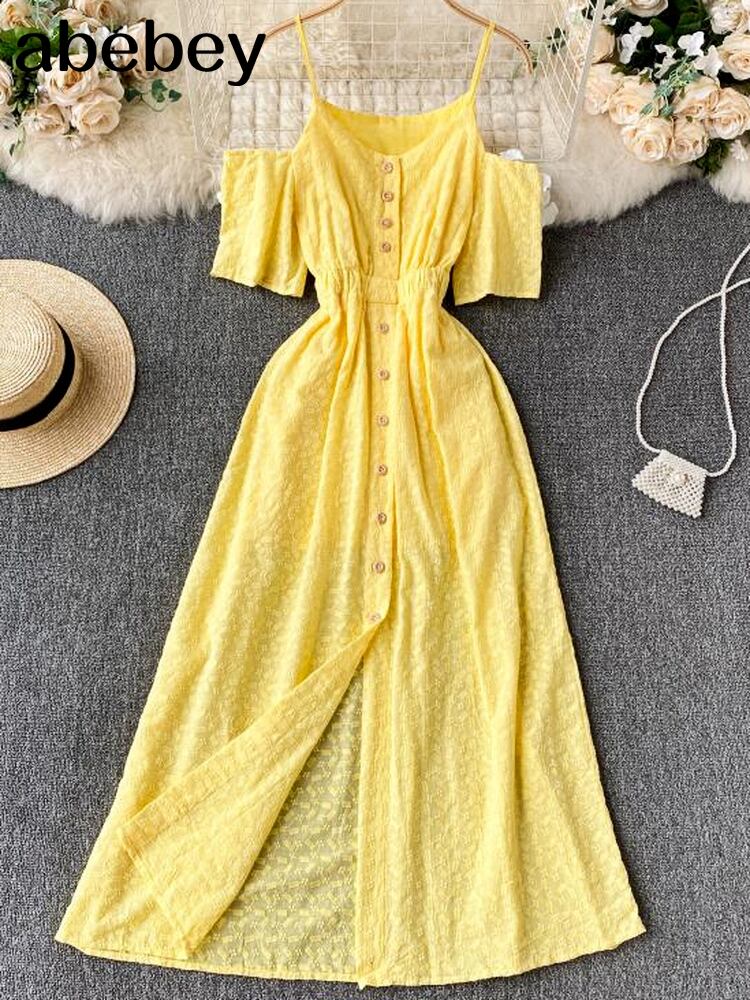 女性オフショルダーストラップドレスフレンチVネック半袖ボタンAラインドレスサマービーチロングドレス ショート ハーフスリーブ 夏物 Abe9268011550