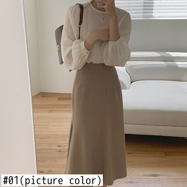 女性ツーピース衣装春と秋の女性のファッションルーズOL気質スモールシャツとハイウエストロングスカート2セット ハイウェスト スプリング 春物 オータム 秋物 Rhc90341978466