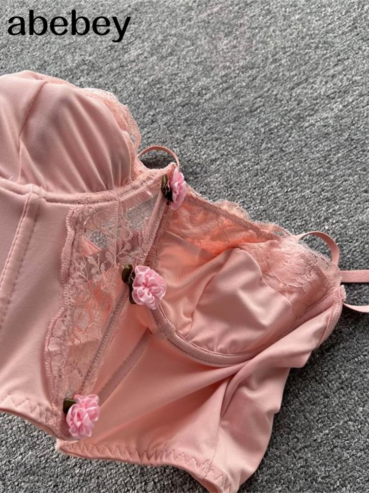 バックレスレースキャミソール女性バックレスクロップトップ2022夏ヴィンテージアンダーワイヤーセクシーなベストトップ サマー 夏物 ビンテージ Abe68636779521
