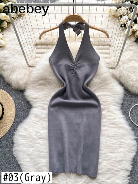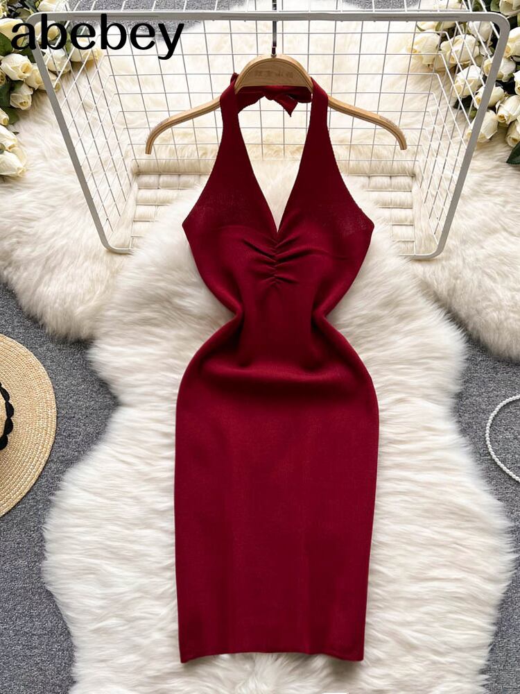2022ノースリーブバックレスセクシーホルタードレス夏の女性のストリートウェアの衣装ソリッドクラブミニドレス サマー 夏物 ソリッドカラー Abe45851539476