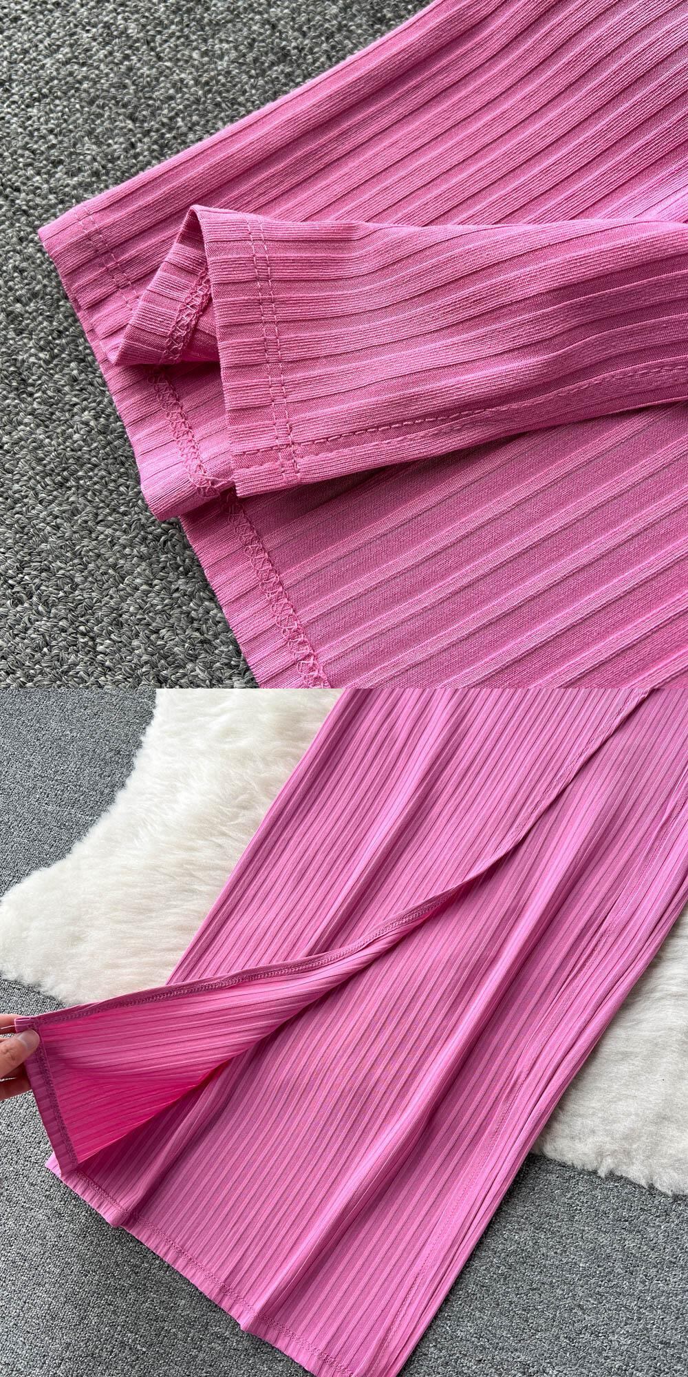 女性サマーニットツーピースセットスキューカラーセクシーショートトップ+伸縮性ウエストスプリットロングスカートソリッドレディーススーツ エラスティック 夏物 ソリッドカラー Abe17745178389
