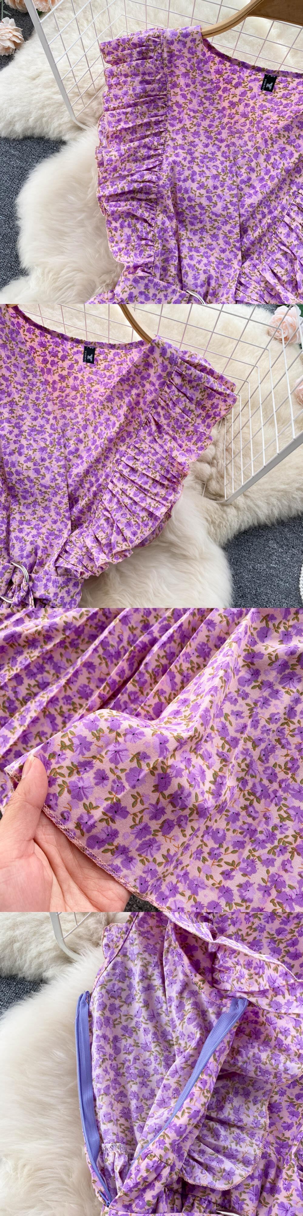 セクシーなVネックプリントサマードレス女性ハイウエストカジュアル半袖ミディドレスフリルルーズドレス2022 ハイウェスト ショート ハーフスリーブ 夏物 Abe13554203213