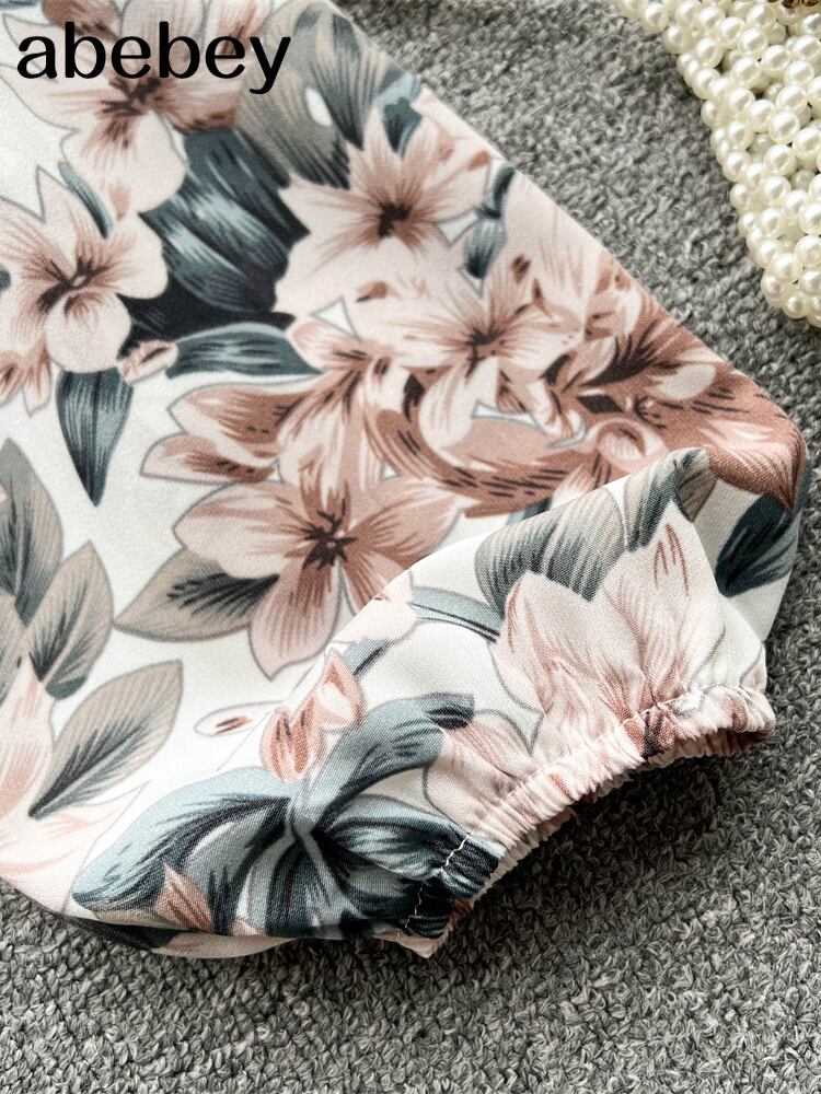 夏セクシーオフショルダースラッシュネック女性ブラウスセクシーフリルレースアップ長袖プリントクロップトップ女性バンデージショート ロング サマー 夏物 Abe43762293785