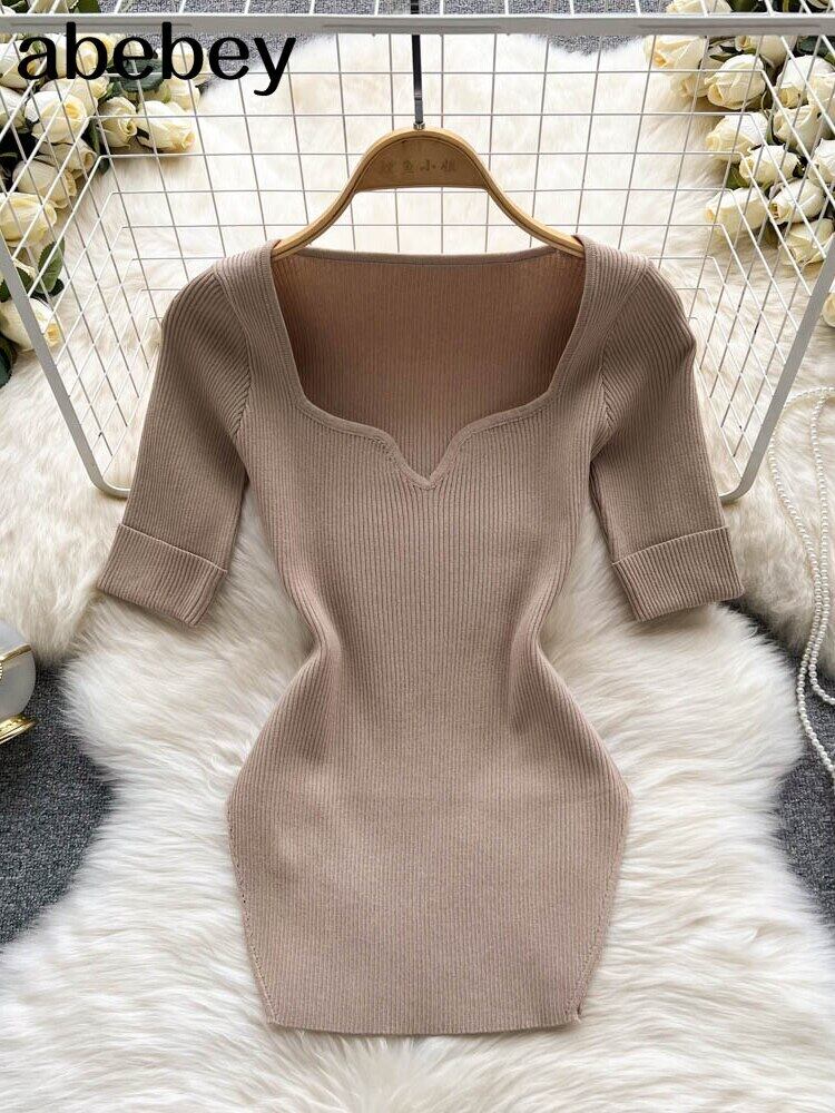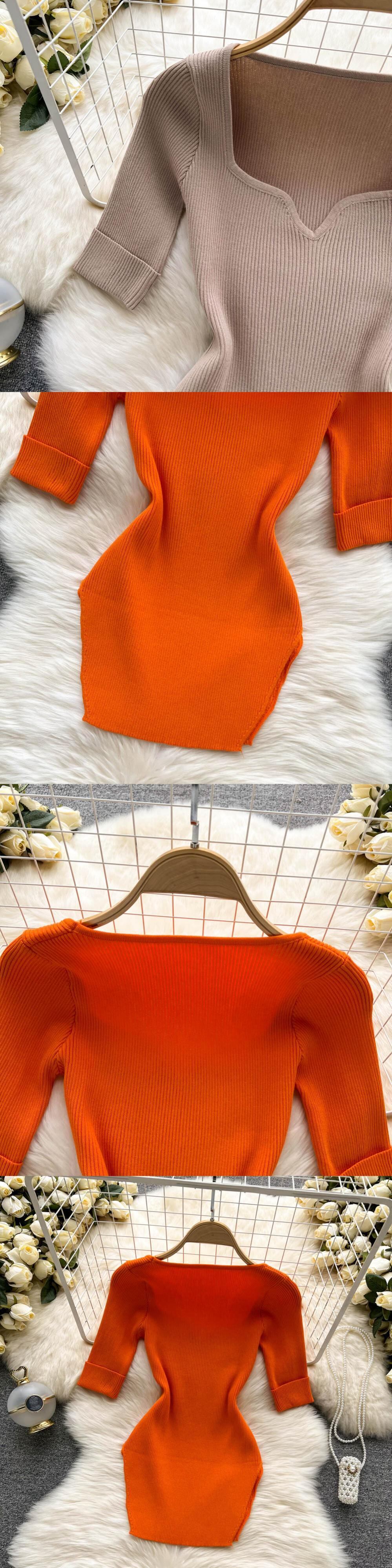 スクエアカラー長袖女性セーターニットプルオーバー女性夏セーター冬トップス女性ブラックホワイトジャンパー ロング サマー 夏物 ウィンター 冬物 スクウェア Abe23213943096
