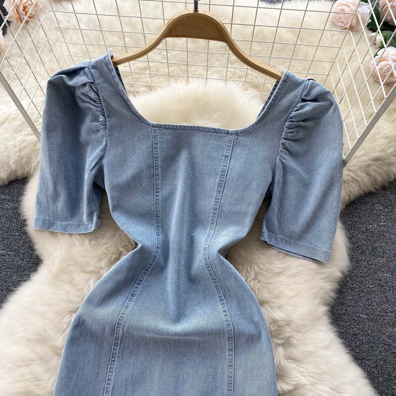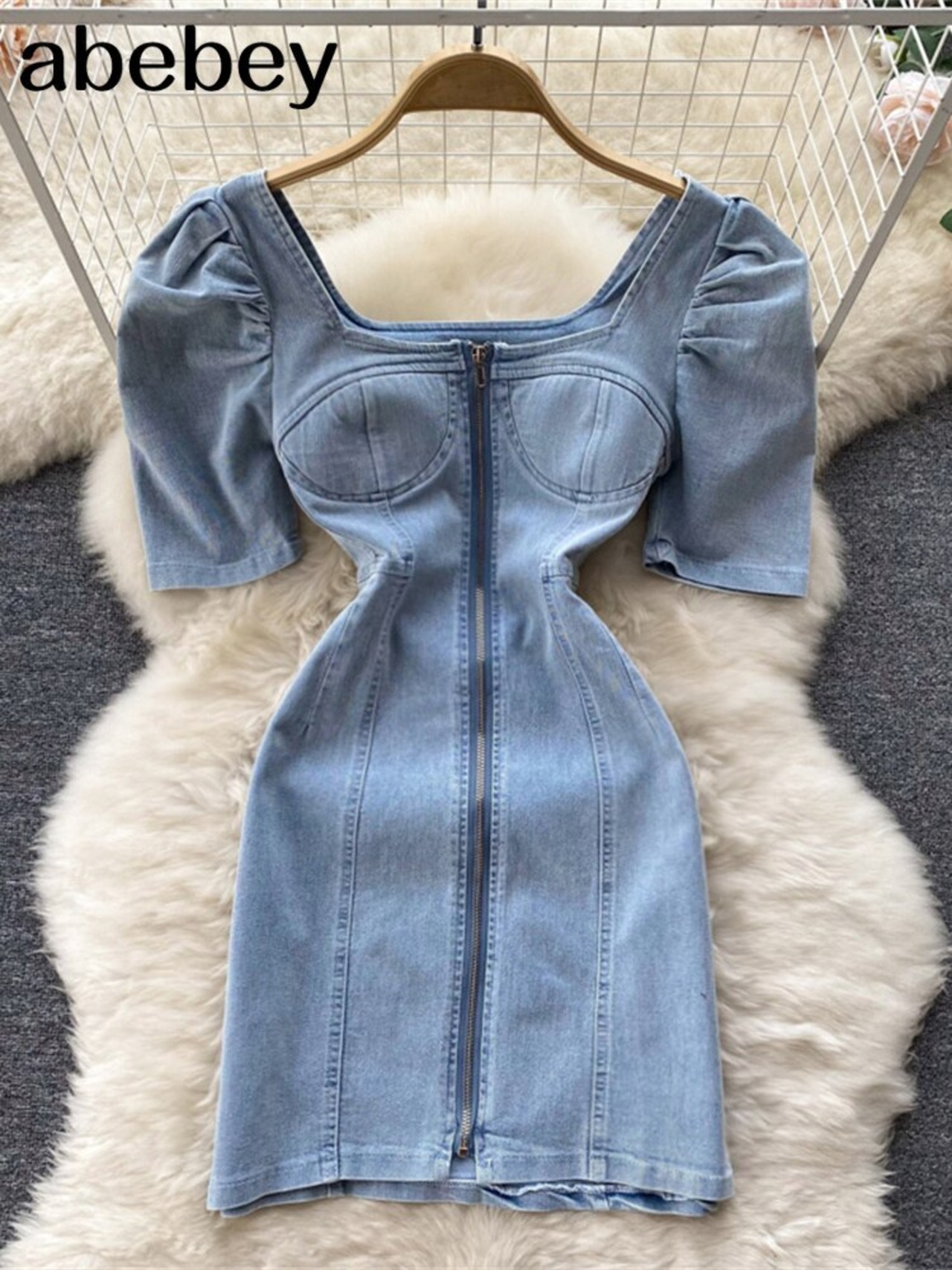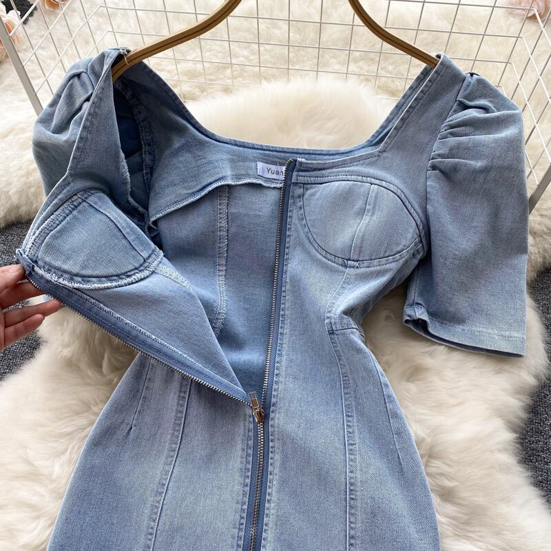 2022年夏のレディースデニムドレスパフスリーブジャカードドレスストリートウェアヴィンテージハラジュクAラインミニフロック かわいい サマー 夏物 ビンテージ Abe72777724455