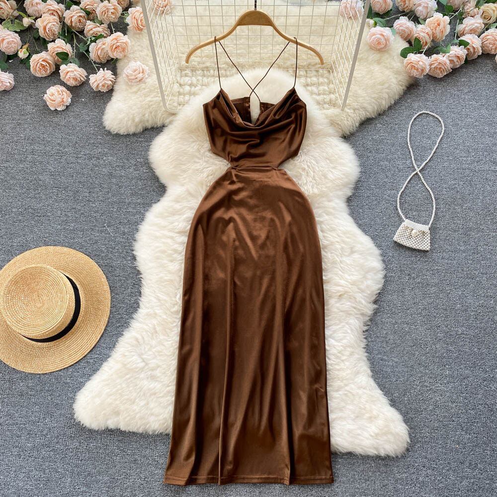2022年夏のスパゲッティストラップホルターセクシーな背中の開いたマキシドレス包帯ノースリーブクラブパーティーロングドレスボディコン サマー 夏物 Abe9502116840