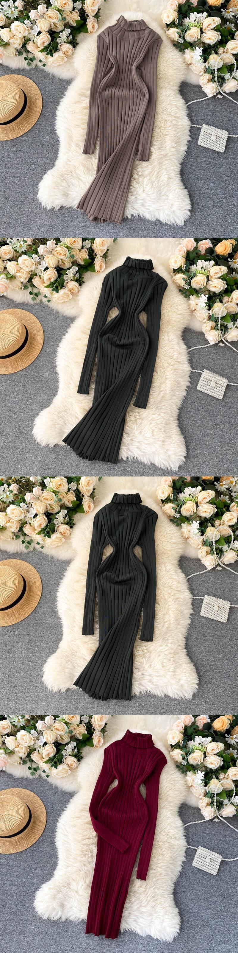 Turtlneckセータードレス女性秋冬伸縮性のある暖かいスリムなドレスニットボディコンクラブウェアドレス2022 エラスティック オータム 秋物 ウィンター 冬物 Abe14191751353