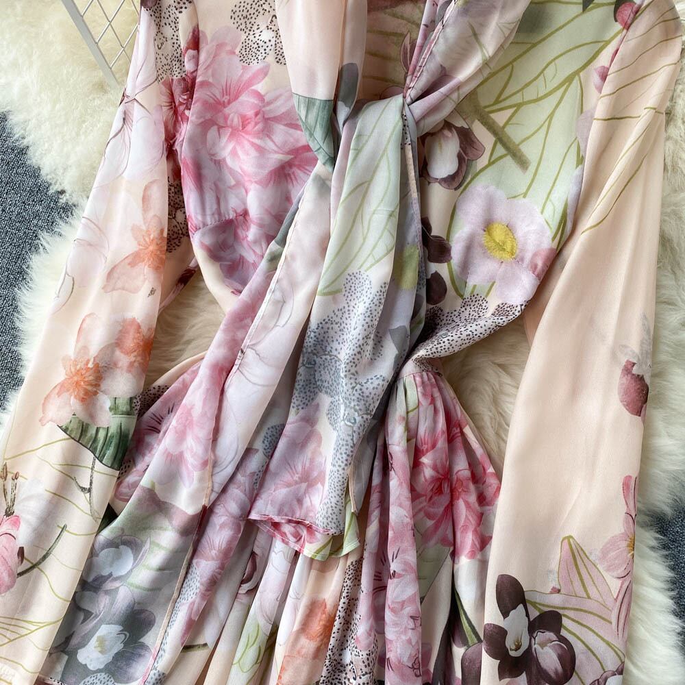 女性サマーフローラルプリントマキシドレス2022自由奔放に生きるビーチドレス女性のイブニングパーティーロングドレスVestidosビーチサンドレスローブ 夏物 花柄 Abe72822210695