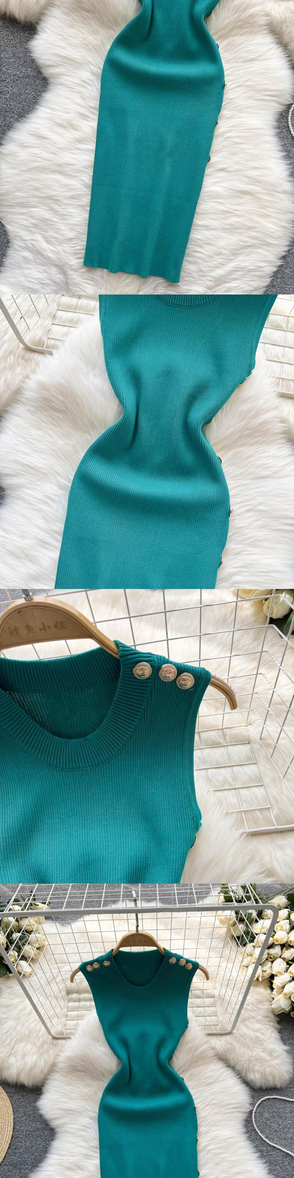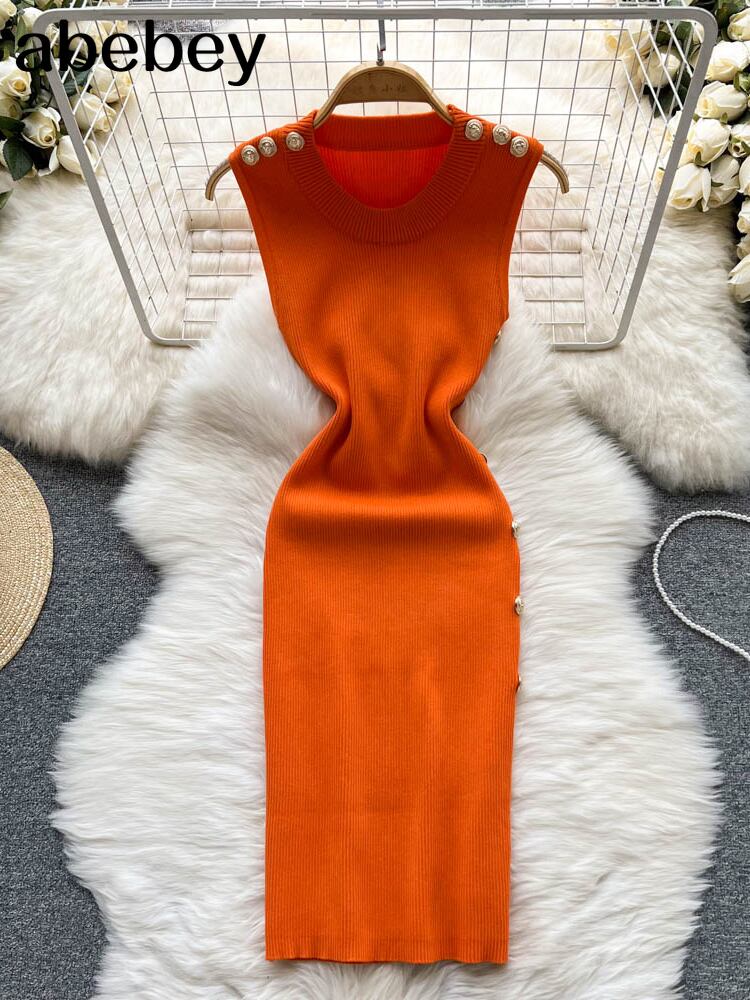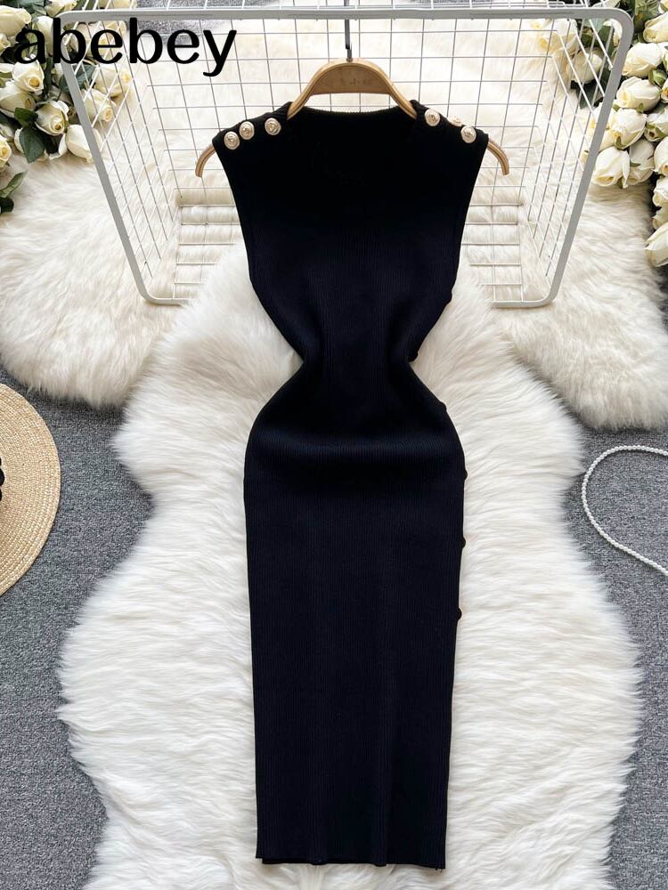 女性の鉛筆ドレスタンクスリーブOネックボディコンセクシーなVestidosKpopヴィンテージOL弾性ニットサマードレス エラスティック 伸縮 夏物 ビンテージ Abe37648768682