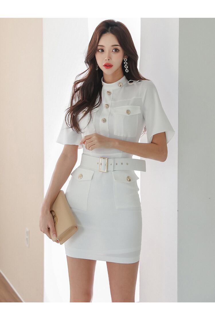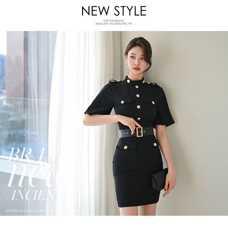 2022年夏のワークオフィス、ベルト鉛筆ミニドレスボタンビジネスパーティーボディコン女性シースドレス サマー 夏物 ハーネス 会社 学校 通勤や通学にも Rhc58104148309