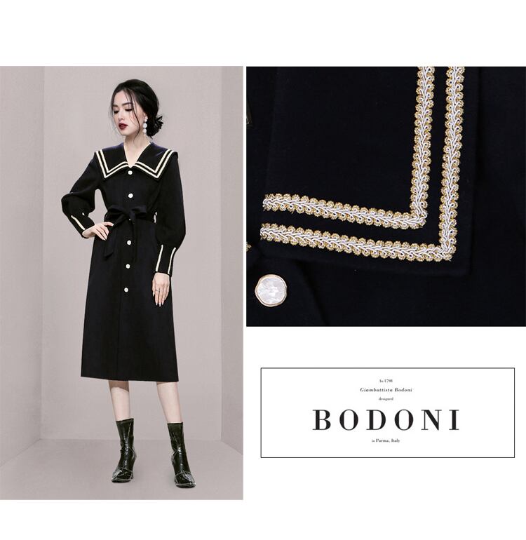 ウールコート女性2021年秋冬ヴィンテージシングルブレストネイビーカラーアジャストウエストウエストロングウールトレンチコート オータム 秋物 ウィンター 冬物 ビンテージ Rhc52526162296