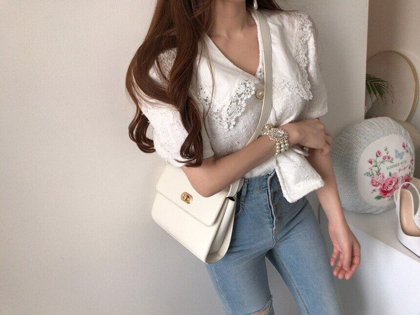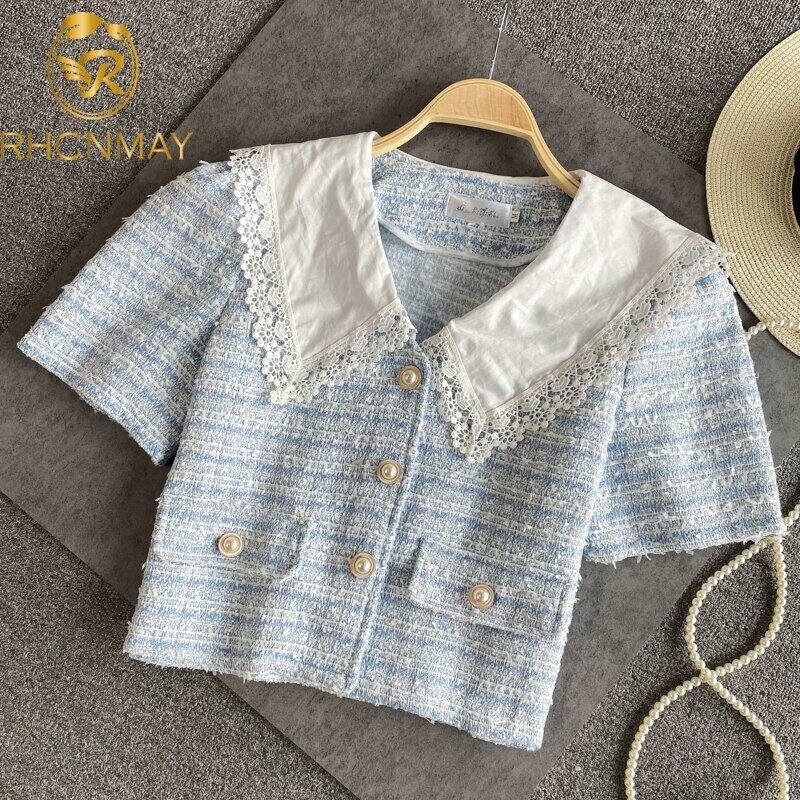女性の夏2021ニッチシングルブレスト半袖スウィートレースリトルコートショートシャツトップ ハーフスリーブ 大人ガーリー キュート カジュアル サマー 夏物 Rhc29820960773