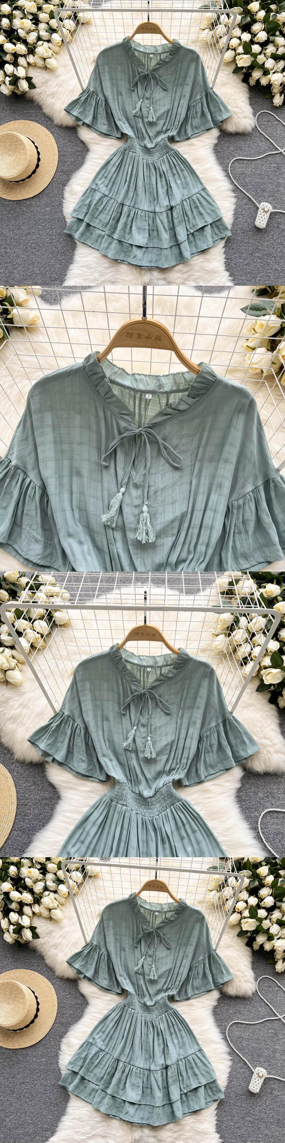 女性ミニドレス半袖ラップ夏自由奔放に生きるホリデーパーティーサンドレスvestidos ショート ハーフスリーブ サマー 夏物 Abe71582811438