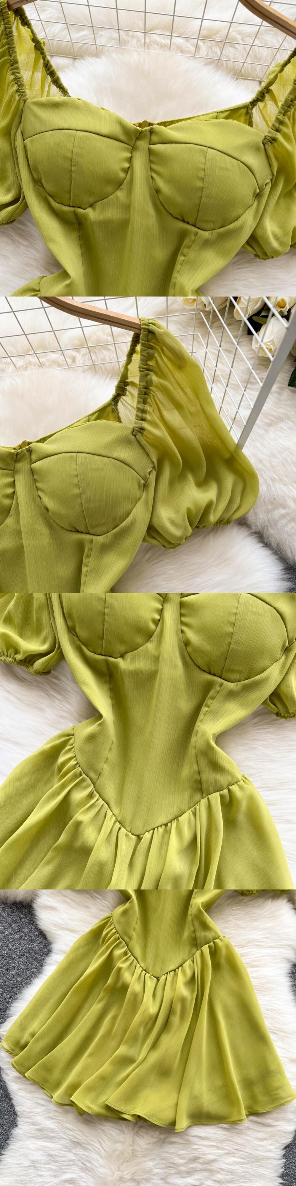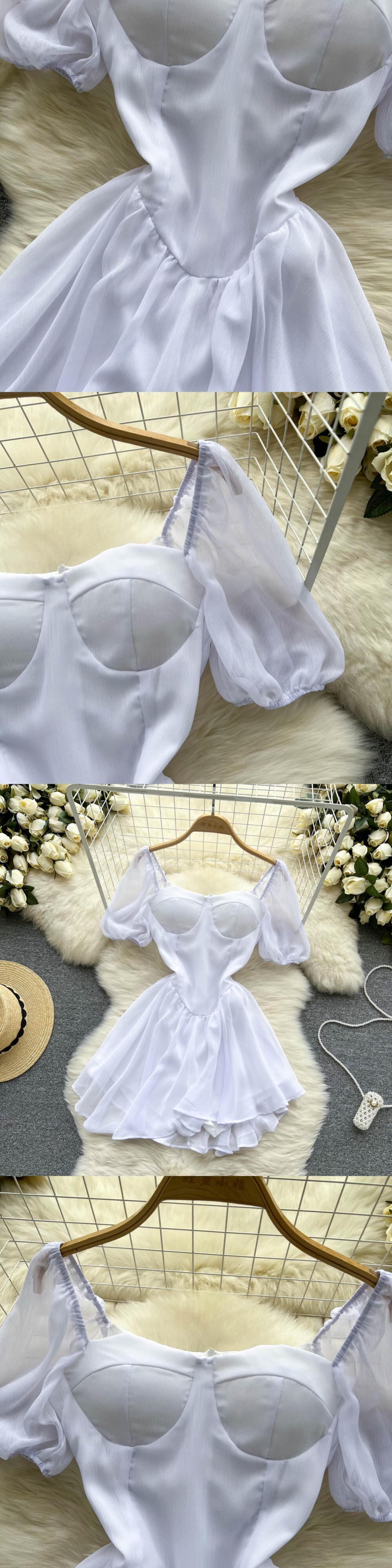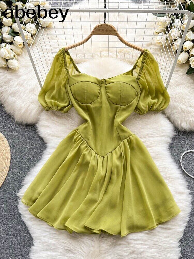 夏フレンチシフォンドレス女性スクエアネック半袖ソリッドパーティードレスジッパーミニドレス ショート ハーフスリーブ サマー 夏物 ソリッドカラー Abe14048703644