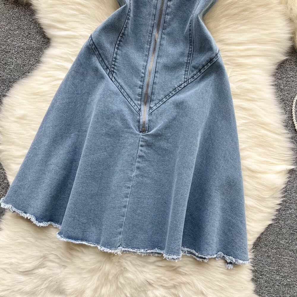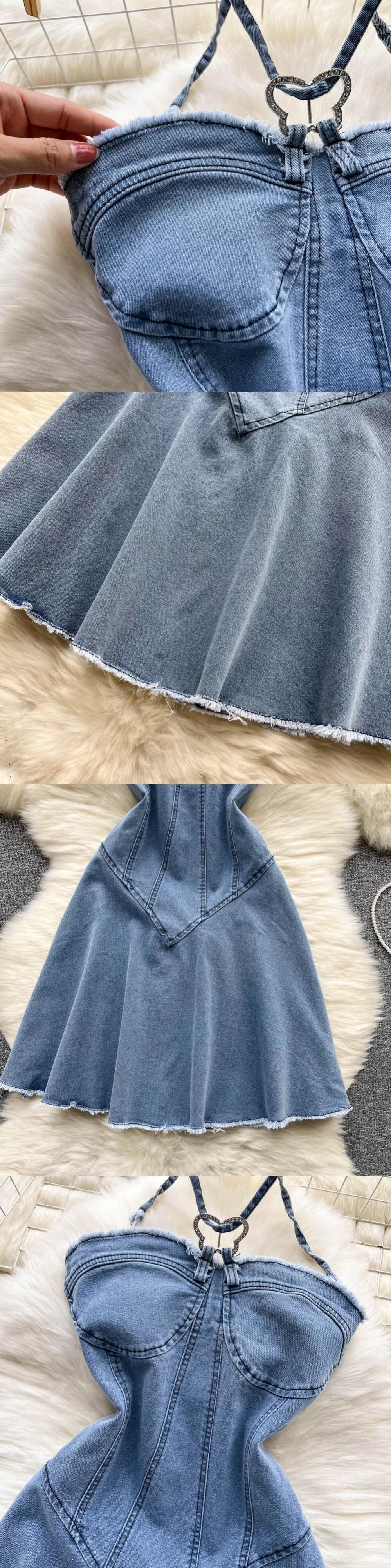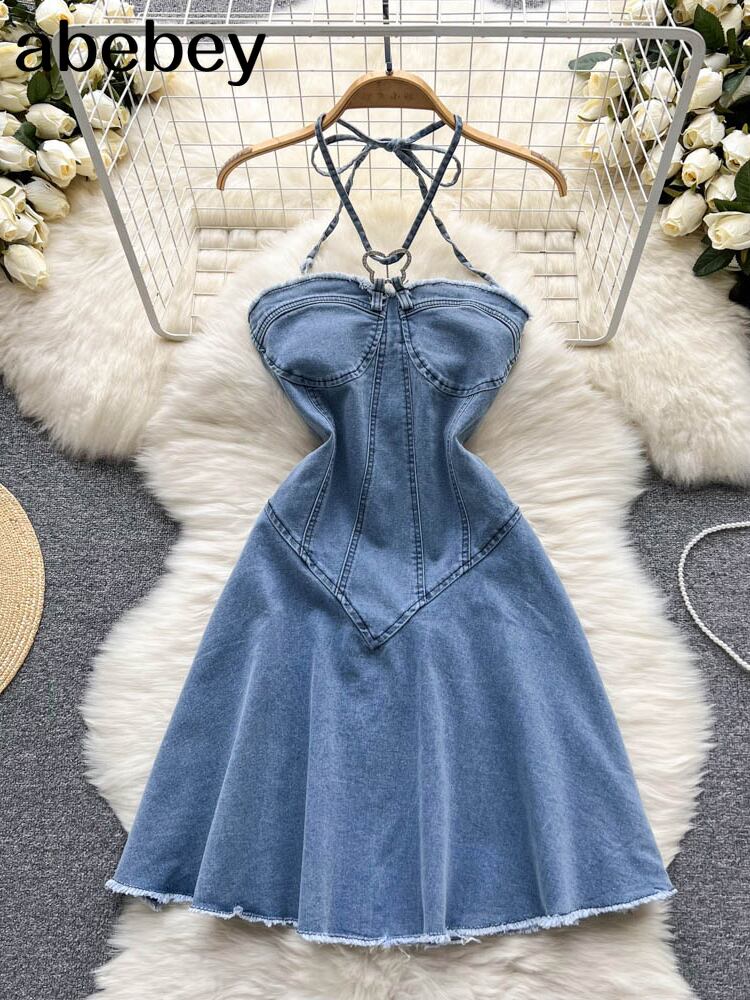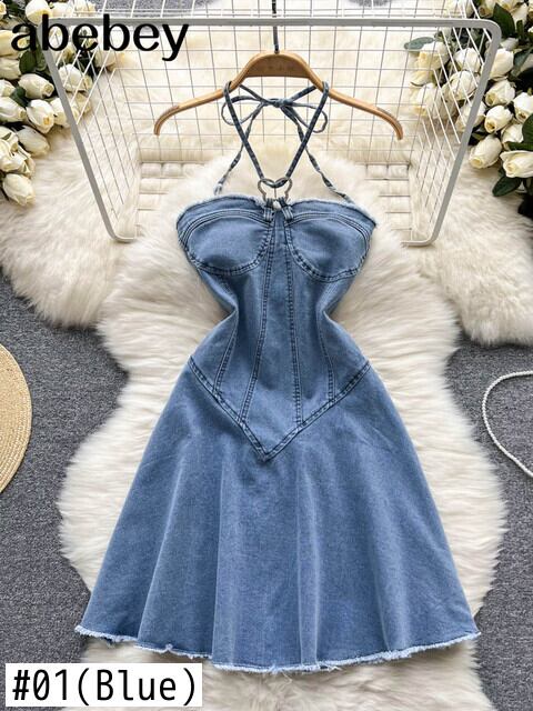 女性デニムドレスヒップパッケージ弾性巾着レースアップスパゲッティストラップミニボディコンAラインVestidosセクシーなストリートウェアの服 エラスティック 伸縮 Abe56391432629