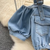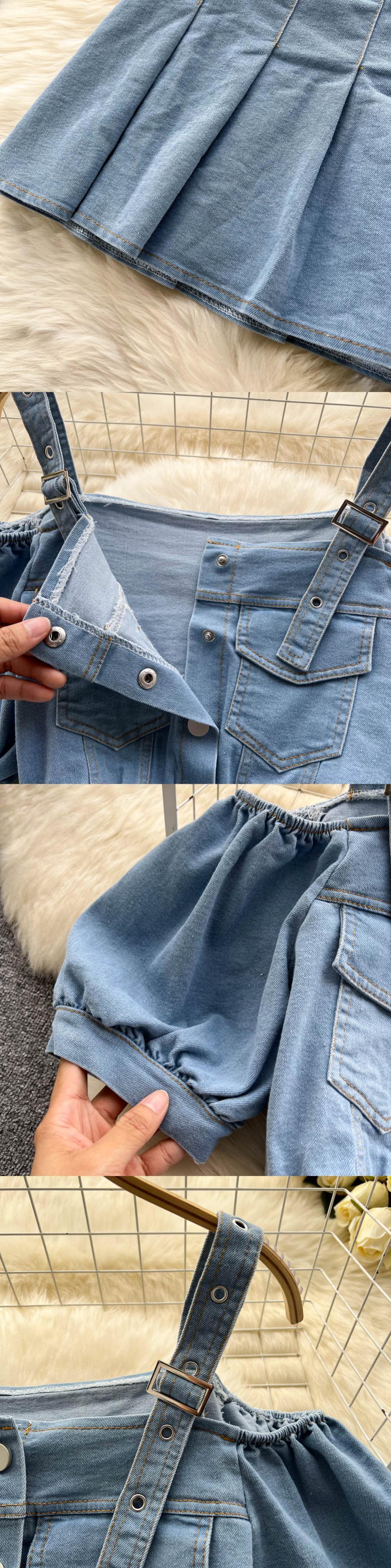 女性の夏のセクシーなデニムセットストラップボットンクロップトップ+ショートミニスカートショートジーンズツーピーススーツ サマー 夏物 Abe29203651308