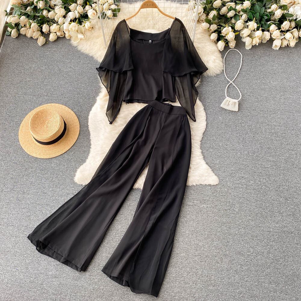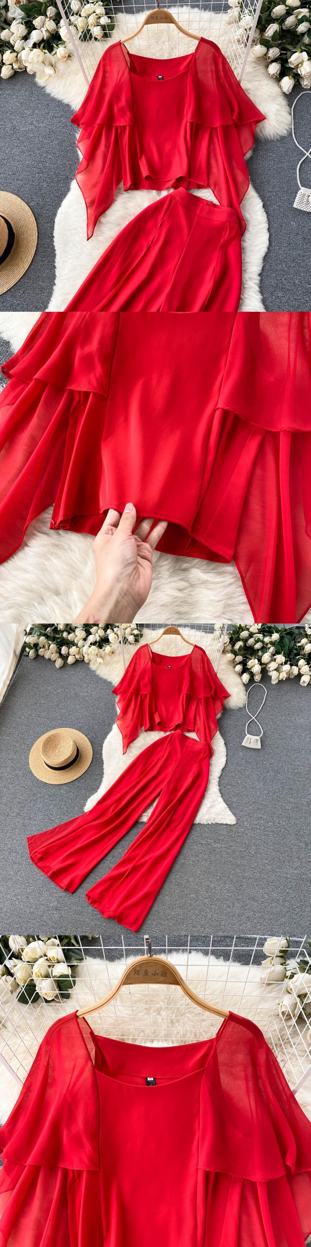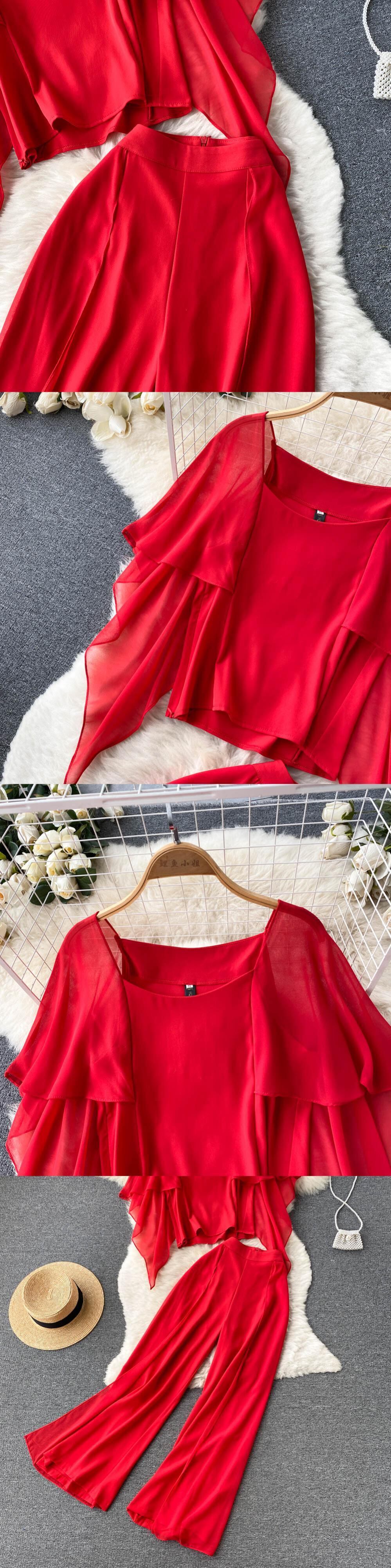 女性パンツセット2022無地スクエアカラー半袖トップスウエストパンツオフィスロングパンツOutifits ショート ハーフスリーブ ソリッドカラー スクウェア 会社 学校 通勤や通学にも Abe20984988944