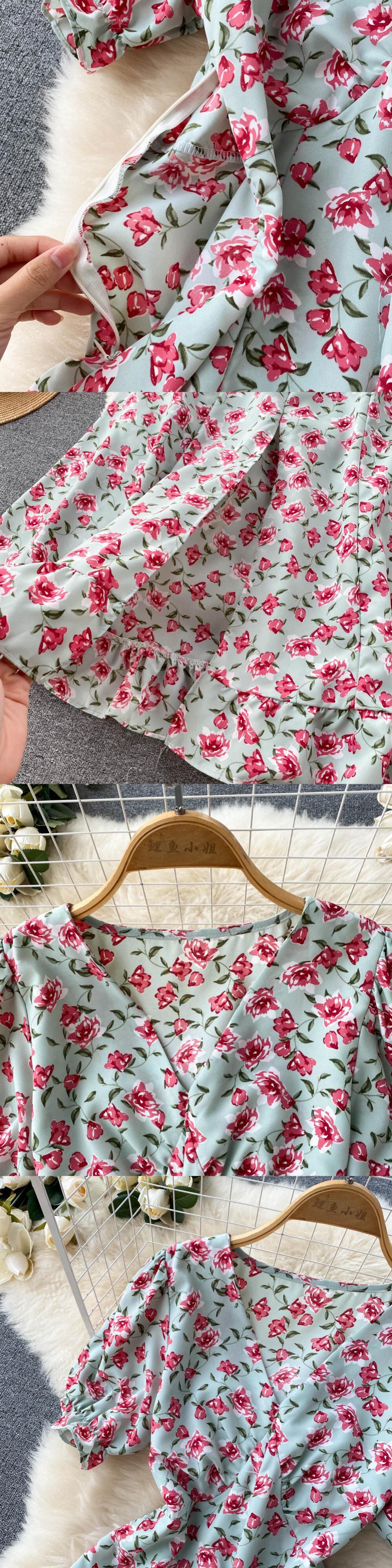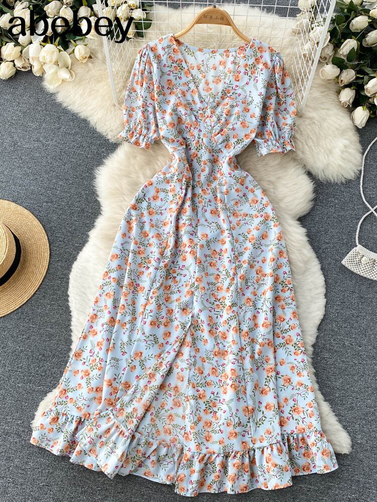 夏の花のビーチセクシーなドレスフリルVネックシックなプリントパーティーサンドレス女性ボヘミアンロングラップドレス ラッフル サマー 夏物 花柄 Abe76840489389