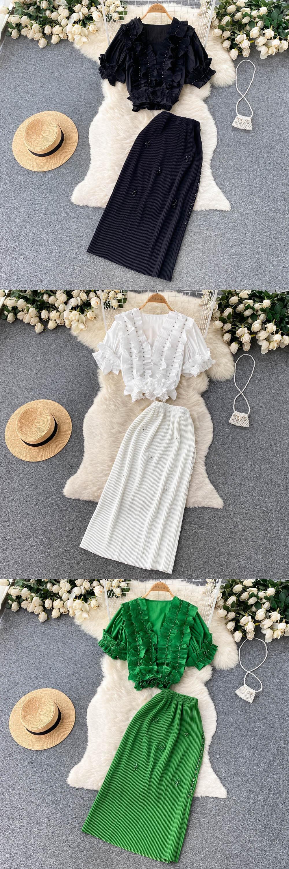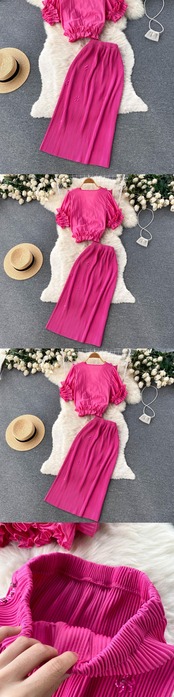 女性夏セクシーケーキスカートスリングクロップトップ+ロングスカートソリッドフリルウエストツーピースセット2022Outifits サマー 夏物 ソリッドカラー Abe40085179791