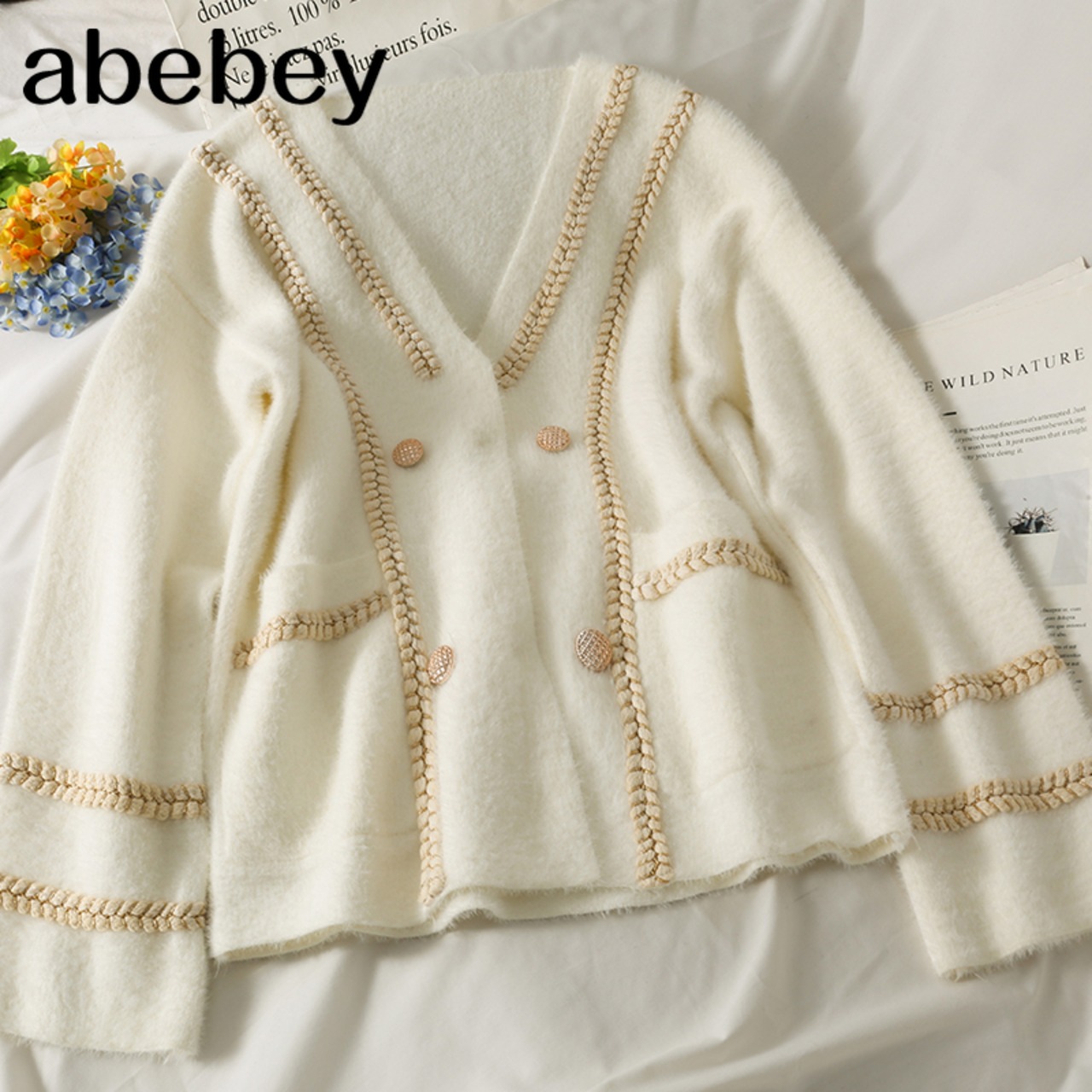 女性ニットカーディガン長袖Vネックダブルブレストトップス秋冬柔らかく厚手の暖かいセーターアウター ロング オータム 秋物 ウィンター 冬物 Abe43918571131
