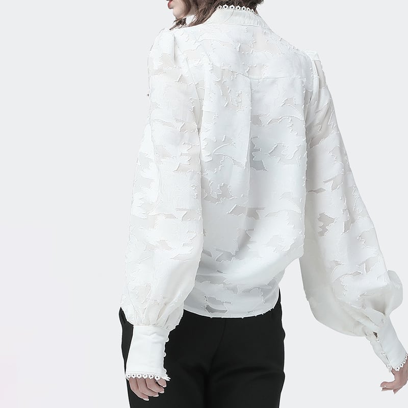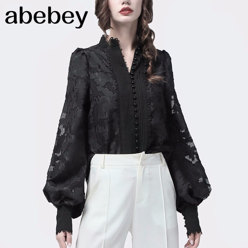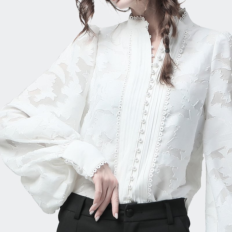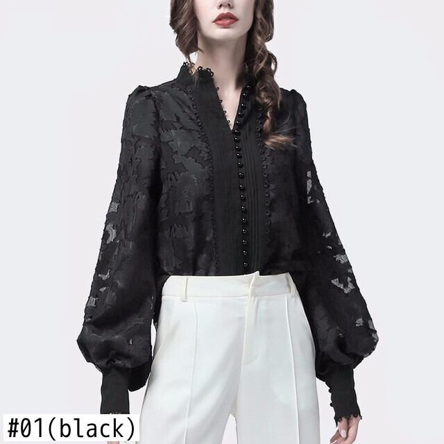 パッチワークレースレディースシャツランタン長袖スタンドカラーシャツブラウス2022秋 ロング オータム 秋物 Abe98547767398