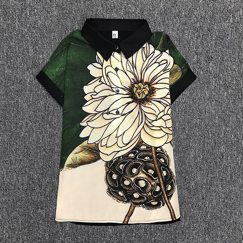 2020年夏のレディースフラワープリント半袖シャツブラウス+スリムな足首丈パンツスーツツーピースセット衣装 ショート ハーフスリーブ サマー 夏物 フラワーデザイン Rhc69965878102