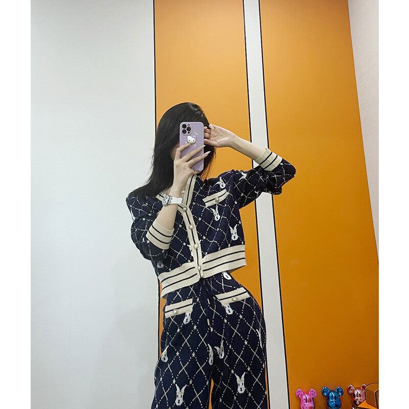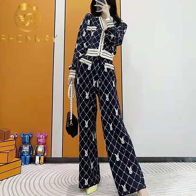 ニットツーピースセット女性2021年秋冬セット長袖セーターカーディガン+ワイドレッグロングパンツスーツ オータム 秋物 ウィンター 冬物 ワイドパンツ Rhc45739014935