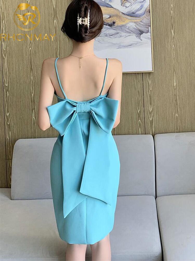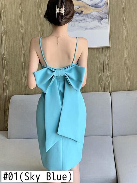 夏の毎日のソリッドミニボディコンスリムドレス女性の服ノースリーブセクシーな背中の開いた弓スキニードレスローブ リボン サマー 夏物 ソリッドカラー Rhc91795758712