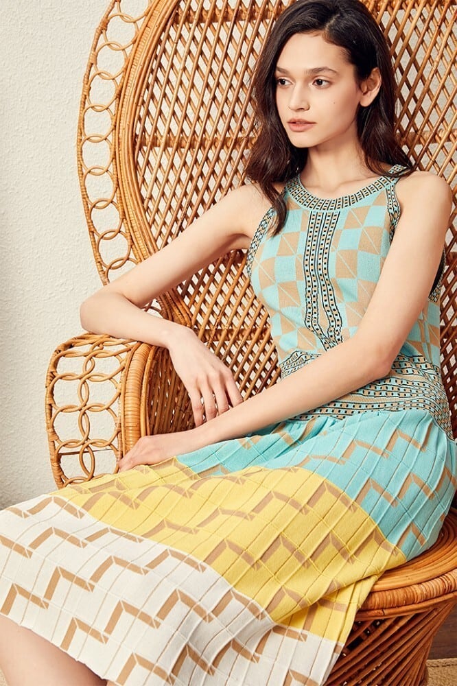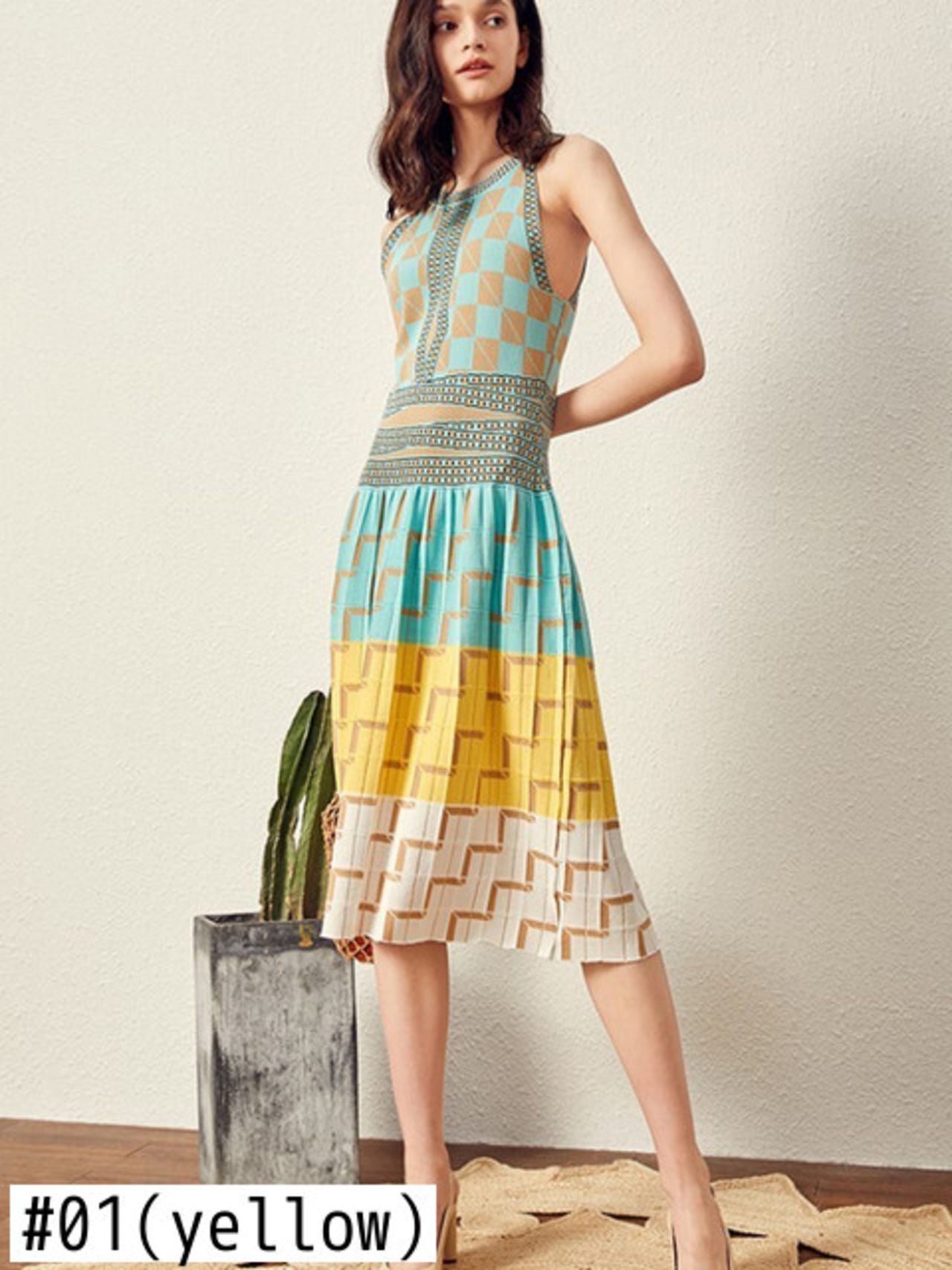 2019滑走路春夏女性ニットドレスセクシーなOネックノースリーブボヘミアンチェック柄セータードレスレディース自由奔放に生きるvestidos スプリング 春物 サマー 夏物 Rhc32924338382