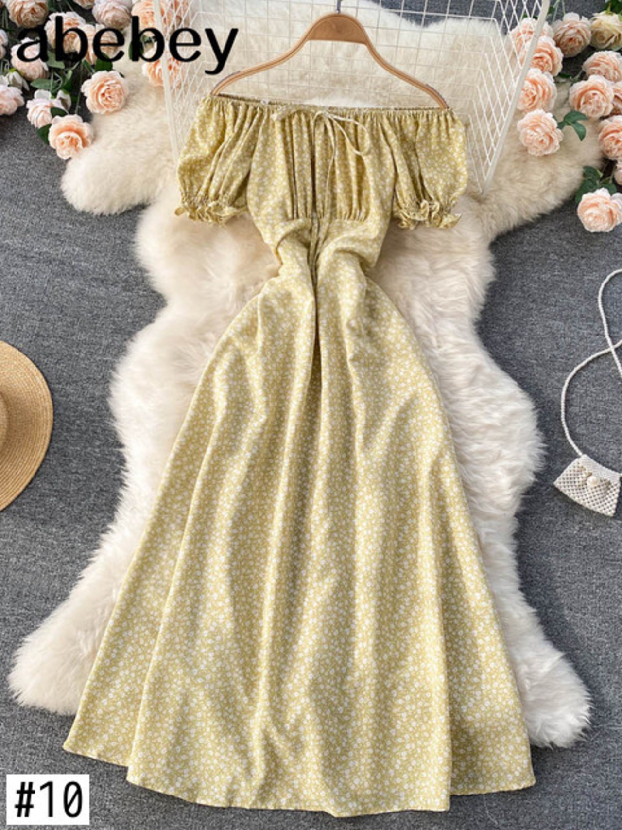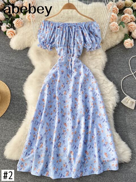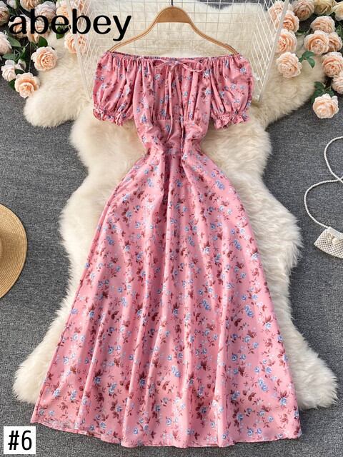 女性花柄ドレスボヘミアンAラインスラッシュネック半袖ドレス夏ヴィンテージビーチオフショルダー水玉サンドレス ショート ハーフスリーブ サマー 夏物 ビンテージ Abe4293469155