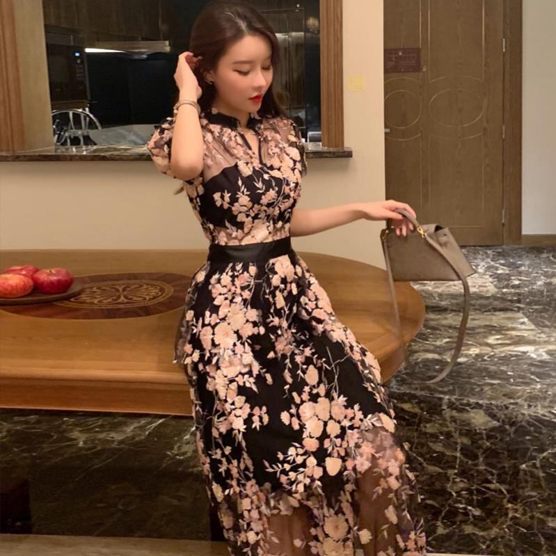 2021年夏のセルフポートレートランウェイドレス女性花刺繡スパンコールロングドレスメッシュバケーションビーチドレスVestidos 刺繍 サマー 夏物 花柄 Rhc97709645988